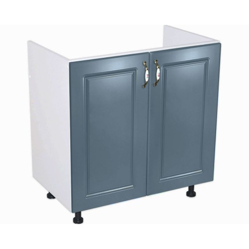 Corp inferior 80 cu 2 usi masca chiuveta Zebra MDF albastru , frezare dreptunghi Dimensiuni (l x h x a): 800 x 820 x 500 mm Culoare: Alb, albastru Materiale folosite: Pal melaminat, usi din MDF infoliat, manere metalice cu insertie portelan, balamale metal, picioare reglabile plastic 100 mm. *Nota: Schita de montaj nu se afla in interiorul coletului intre piesele de mobila. Schita de montaj o sa fie atasata pe spatele facturii.