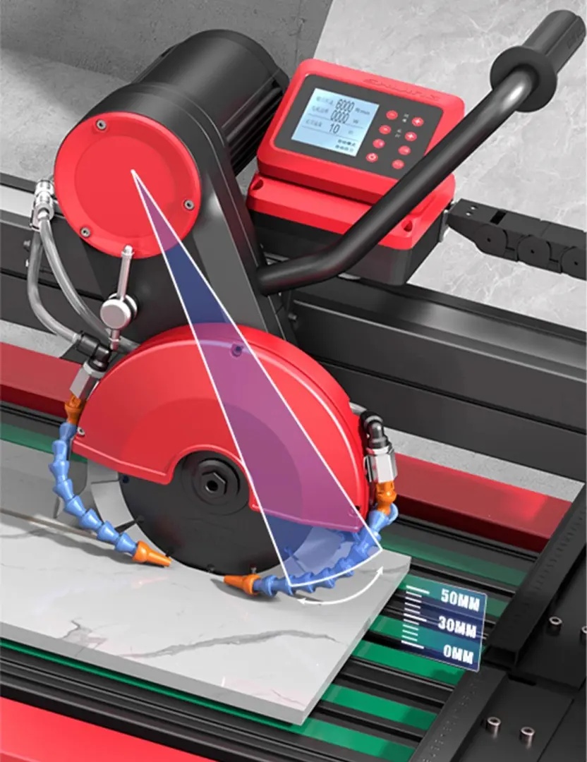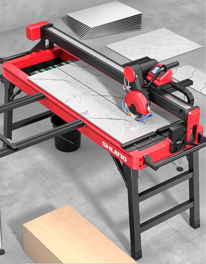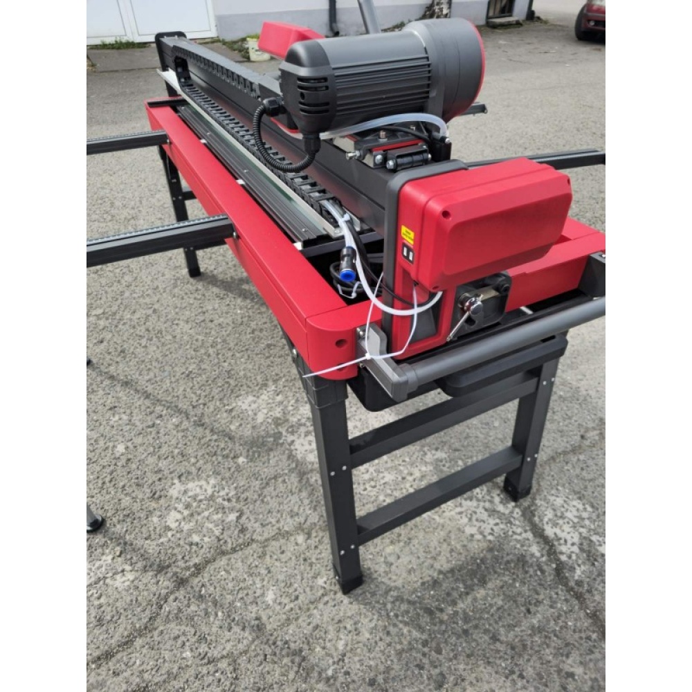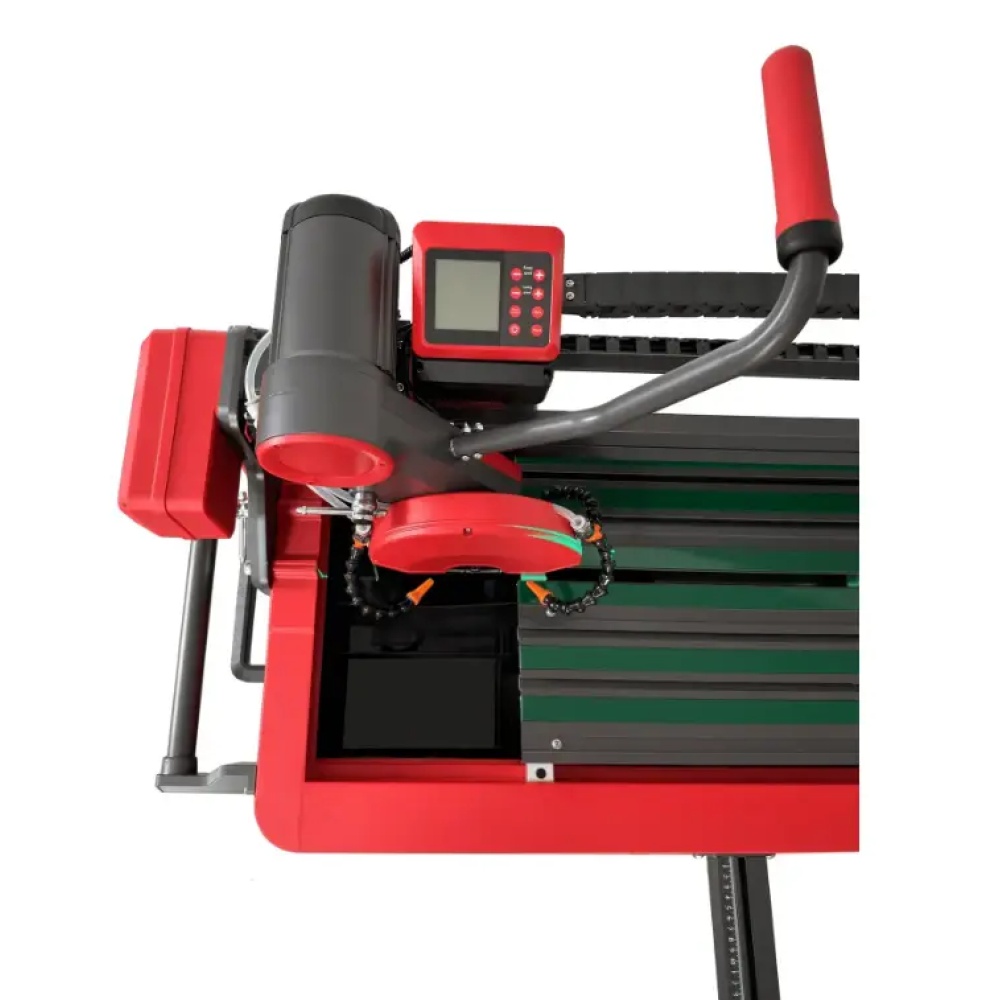 asina automata de taiat si frezat gresie, faianta, placi ceramice, display LCD - 120cm, 4.5kW - SHIJING-9201A-1200 din gama de masini de taiat gresie, faianta Descriere Produs SHIJING-9201A -1200 este o mașină de tăiat gresie și faianță electrică, multifuncțională și automată, cu un singur ghidaj, care poate tăia plăci de până la 1200mm lungime. Este concepută pentru tăierea precisă, cu sistem de răcire cu apă, a diverselor materiale, inclusiv ceramică, granit și marmură. Dispune de un motor fără perii din cupru pur și poate fi operat atât manual, cât și automat. Puncte Cheie și Avantaje Motor puternic fără perii: Motorul de 4500W din cupru pur oferă putere și viteză mare pentru o tăiere eficientă. Funcționare automată: Include alimentarea automată a discului de tăiere și umplerea cu apă, precum și o funcție integrată de revenire automată a discului. Control avansat: Mașina este echipată cu o consolă centrală cu ecran LCD și o telecomandă cu funcții complete. Tăiere versatilă: Brațul oscilant permite tăierea în sus și în jos, în timp ce motorul reglabil permite tăieturi în unghi de la 0-45 de grade și o adâncime de tăiere de 0-50mm. Sistem de apă eficient: Are un rezervor de apă cu auto-amorsare, în stil sertar, și jeturi de apă de răcire multidirecționale pentru un management termic optim și controlul prafului. Utilizare Această mașină este folosită de faianțari, tâmplari și profesioniști pentru a tăia plăci ceramice, piatră și alte materiale într-o varietate de medii, inclusiv pe șantiere de construcții și în ateliere. Este potrivită pentru tăierea unei game largi de materiale, inclusiv lemn, cupru și aluminiu, în limita capacității sale de tăiere. Specificații Tehnice Putere nominală: 4500W Voltaj nominal: 220V 50Hz Viteză fără sarcină: 3000, 4000, 5000, 6000 r/min Lungime de tăiere: 1200mm Diametrul discului: 130-200mm Adâncime de tăiere: 0-50mm Unghi de tăiere: 0-45° Lățimea mesei de lucru: 600mm Kitul de livrare standard include: Mașina de tăiat SHIJING-9201A-1200 Suport lateral Pompă de apă Un set de chei pentru întreținerea mașinii Ghidul utilizatorului Include roti pt. transport DA ✅ PRO = Este destinata pentru utilizare profesionala in conditii de dificultate medii si de intensitate medie - precizie foarte buna (±1mm) Conceput pentru taiere de placi ceramice. Ideal pentru gresie si faianta. Bun si pentru alte materiale: granit, marmura etc. Cap de taiere mobil automat cu display LCD. Motorul este fixat pe o grinda pliabila pentru taieri la 45 de grade. Sasiul solid si rezistent. Cu opritor lateral pentru taieri repetitive si reglaj la unghi. Rezervor si pompa de apa pentru recircularea apei. Picioare pliabile incorporate in masa. Roti pentru transport incorporate in masa