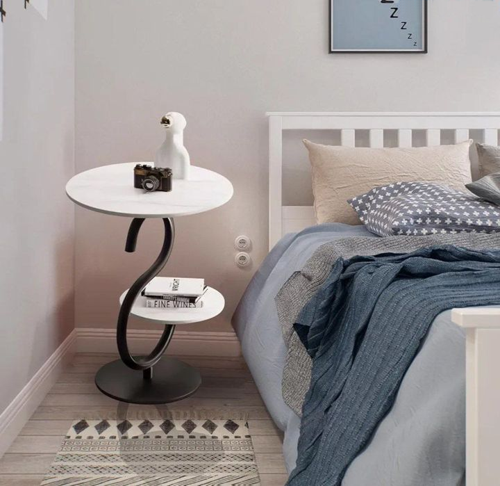Masuta rotunda cafea, 40x60 cm Cadru din metal si blat stil marmura, Alb/negru Design elegant cu blat stil marmura pentru un aspect sofisticat Masuta de cafea este dotata cu un blat cu finisaj stil marmura, oferind un aspect sofisticat si modern, perfect pentru orice incapere. Aspectul marmurei albe adauga un plus de eleganta si rafinament, fiind ideala pentru decorarea livingului sau a spatiilor de socializare. Cadrul robust din metal pentru durabilitate si stabilitate Cadrul masutei este realizat din metal rezistent, oferind stabilitate si suport pentru utilizarea zilnica. Materialul metalic de culoare neagra completeaza contrastul cu blatul stil marmura, contribuind la un design modern-industrial, perfect pentru interioarele contemporane sau minimaliste. Masuta de cafea este dimensionata speciala pentru a fi potrivita pentru doua persoane, oferind spatiul necesar pentru a servi o bautura sau o gusta in compania cuiva. Este ideala pentru a crea un loc intim de relaxare, potrivit pentru seri de discutii, savurarea cafelei sau ceaiului. Blatul masutei este realizat din materiale impermeabile, ceea ce il face rezistent la pete si usor de intretinut. Poti savura bauturile preferate fara grija accidentelor, iar curatarea mesei se face rapid cu o carpa umeda, mentinand aspectul sau impecabil. Multifunctionala si versatila pentru diverse utilizari - Aceasta masuta de cafea nu este doar un element de decor atractiv, ci si extrem de functional.