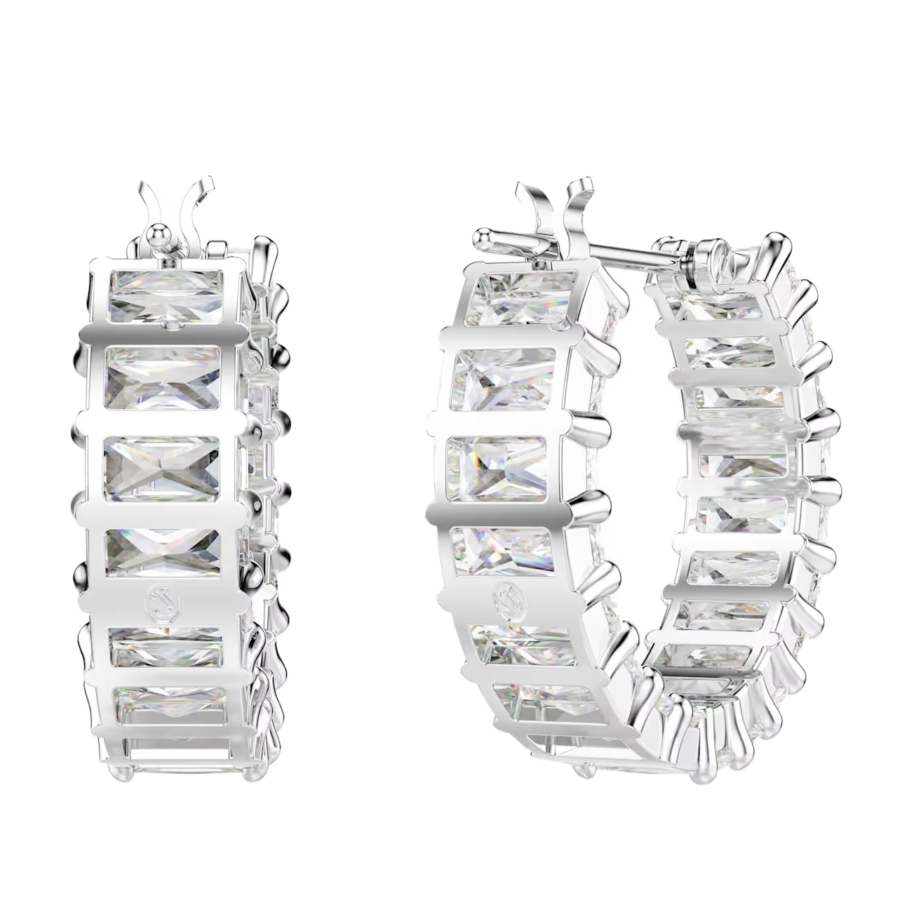 Cerceii Swarovski Matrix 5734471 definesc eleganța modernă printr-o construcție impunătoare de tip cerc, decorată integral cu cristale tăiate rectangular. Strălucirea lor intensă creează un efect spectaculos de lumină, perfect pentru a completa o ținută de seară sau un eveniment special. Placarea cu rodiu adaugă un plus de rafinament și durabilitate, oferind un finisaj impecabil și contemporan.