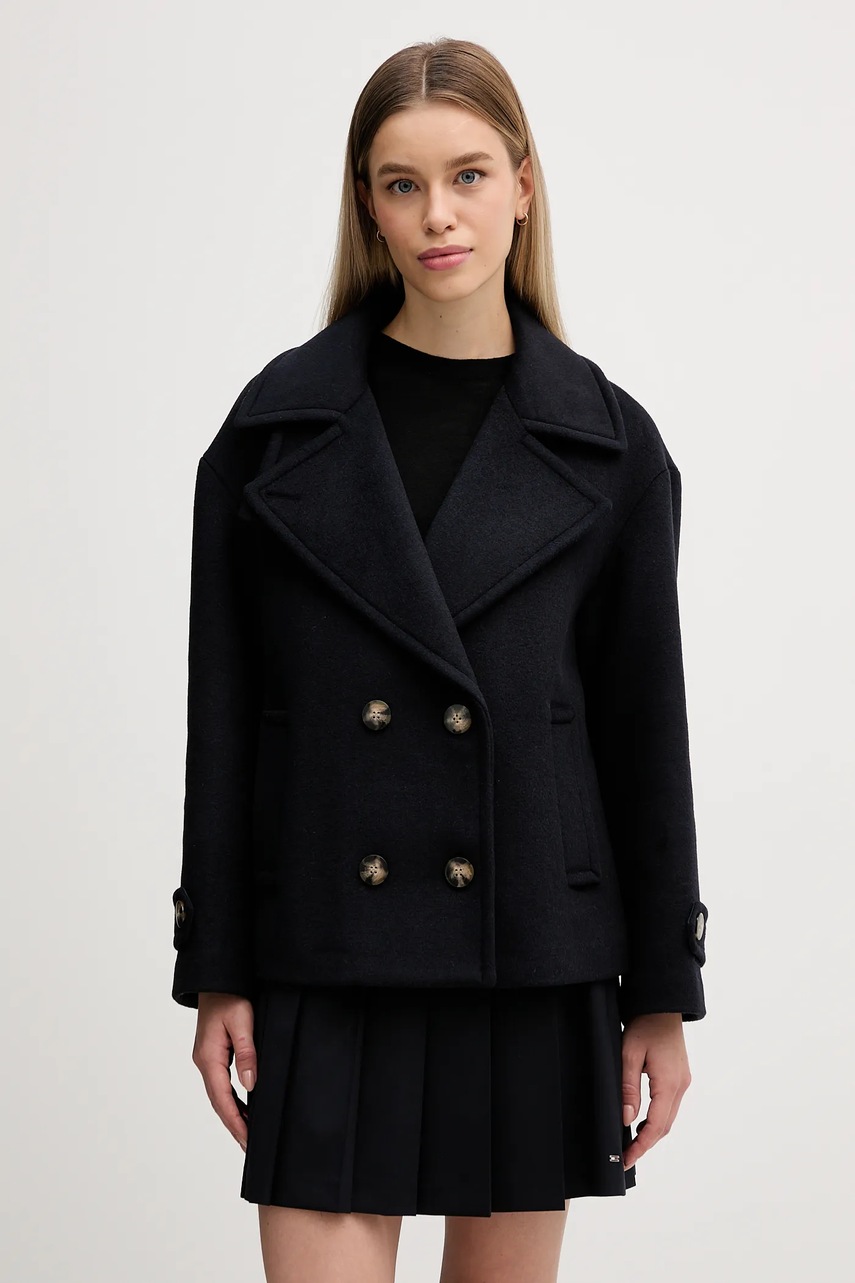 - Fason in clos. - Model cu captuseala. - Închidere cu fermoar, nasture și cârlig. - Două buzunare în față. - Detalii decorative. - Latimea in talie: 38 cm. - Latimea in solduri: 46 cm. - Lungimea fustei: 40 cm. - Dimensiunile date pentru marimea: 36.