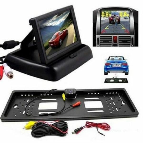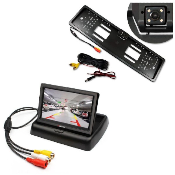 Monitor LCD pliabil de 4.3 inch + Suport numar auto camera video Specificatiile monitorului: Dimensiune ecran: 4.3 '' TFT LCD Rezolutie: 480x272 Raport de aspect 16: 9 Temperatura de lucru: -20 la +70 ° C Sistem: PAL / NTSC Intrare video: x2 Alimentare: DC 12 / 24V (- / + 10%) Putere: < 3 W Dimensiuni: 13,5 x 11 x 9 cm (lungime x adancime x inaltime) Montate 13,5 x 11 x 2,6 cm (L x H x D) Greutate: 260 g Camera video Night Vision marsarier pentru suport numar auto System TV: PAL/NTSC; senzor imagine: OV 1/3 Color CMOS OV7950; unghi vizualizare: 170 grade; rezolutie: 510 x 492; rezolutie: 420 TV Lines; Video Output: 1.0vp-p composite video 75ohm; alimentare: DC 12V, 130mA; Operating Temperature (Deg. C) -20º C~ +50º C; dimensiune: 545x145 mm dimensiune maxima placuta inmatriculare: 527 x 117mm; 1 x suport numar auto cu camera video 1 x cablu alimentare/conexiune, aprox. 6 metri