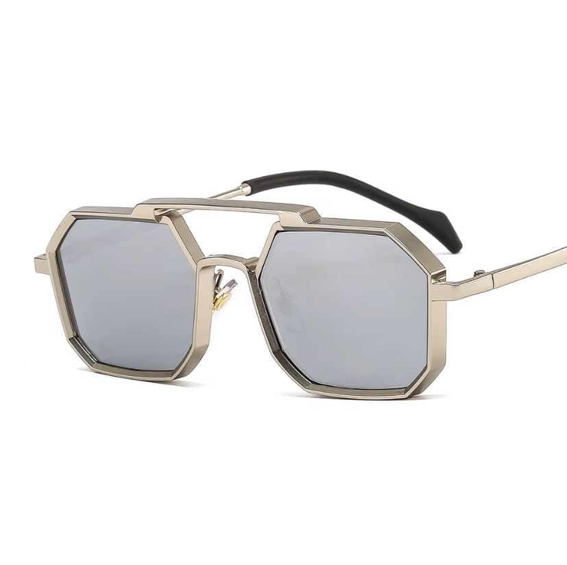 Ochelari de Soare, Vintage Hexagon, Fashion, Protectie UV400, Brate metalice, Gri Engros