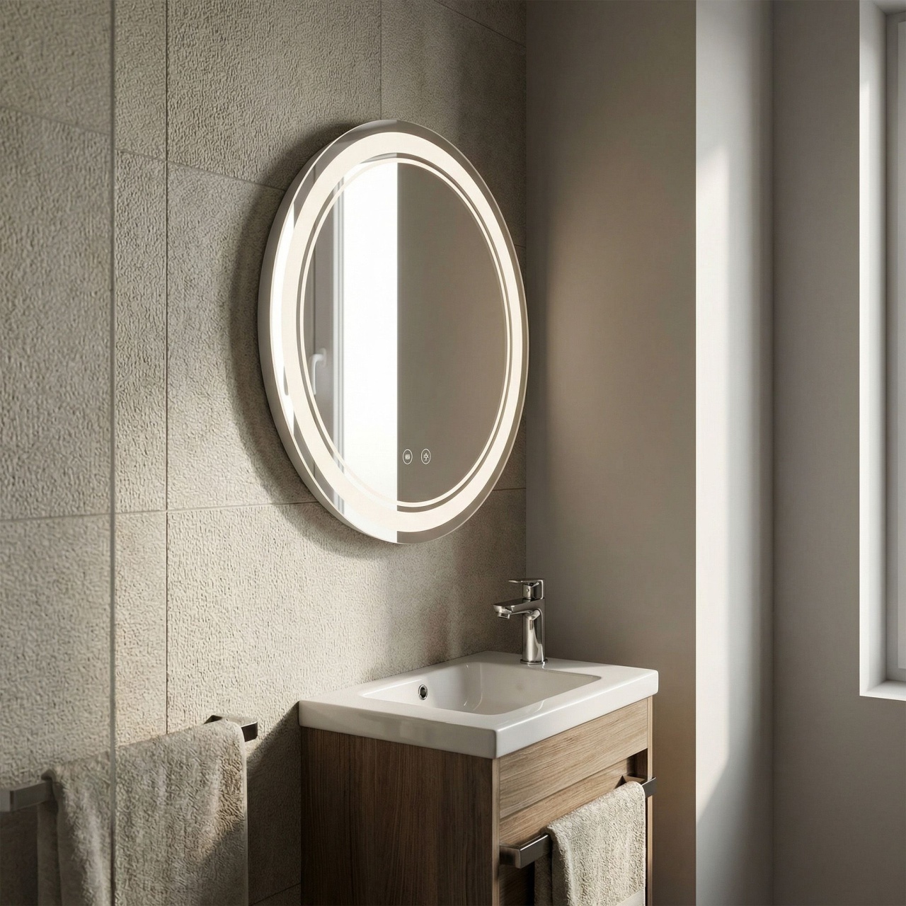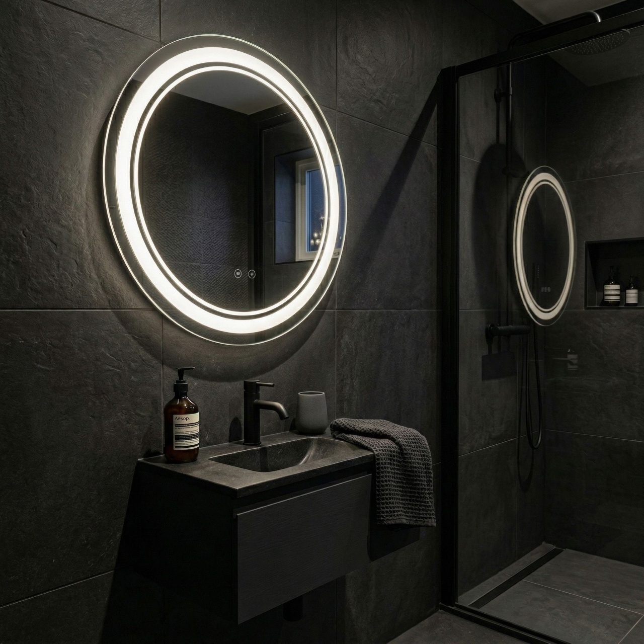 Căutați un accent deosebit care să ofere interiorului dumneavoastră o strălucire subtilă? Apreciați eleganța și modernitatea în baia dumneavoastră cu oglinda rotundă LED Soft 50 cm. Aceasta este combinația ideală între stilul minimalist și funcționalitatea de atmosferă, care va încânta orice utilizator aflat în căutarea unor soluții decorative. Fabricată din materiale de înaltă calitate, oglinda rotundă nu doar mărește optic spațiul, ci introduce și o atmosferă primitoare.Ramă luminoasă dublă decorativă – designul unic cu două cercuri luminoase creează un efect vizual deosebit, fiind ideal ca iluminat suplimentar.Putere luminoasă subtilă – iluminat conceput pentru o funcție ornamentală, care luminează delicat suprafața oglinzii și peretele, fără a deranja ochii.Întrerupător tactil intuitiv – un senzor discret plasat în suprafața sticlei permite controlul confortabil al atmosferei din baia dumneavoastră.Covoraș încălzit integrat (Anti-Fog) – previne aburirea oglinzii, garantând o reflexie clară chiar și după o baie fierbinte.Formă rotundă modernă – liniile fluide și diametrul de 50 cm fac ca oglinda să se potrivească perfect în orice spațiu, chiar și în cele mai mici.Calitate înaltă a oglinzii – execuția precisă garantează durabilitatea și rezistența la condițiile specifice din baie.Oglinda rotundă LED Soft 50 cm este alegerea ideală pentru persoanele care apreciază designul de atmosferă și detaliile de tip bijuterie în interior. Perfectă în fiecare detaliu, va deveni un decor elegant care va transforma seara baia dumneavoastră într-o zonă de relaxare. Inalime: 500 Latime : 500 Adâncime: 25 Iluminare LED: Iluminare LED Formă: Rotund Anti-aburire: Anti-aburire Model: SOFT Putere: 12 Garantie: 24 luni