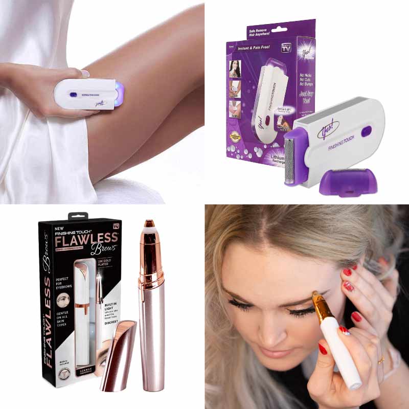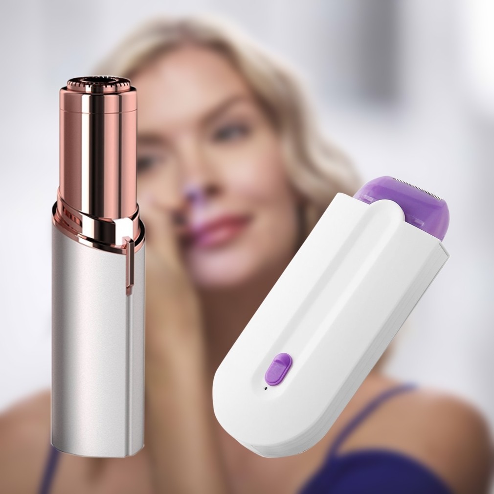 Pachet cosmetic complet: Epilator corp + Trimmer facial Epilator tehnologie 3 in 1 Sensa Light si Epilator Facial Flawless Epilator reincarcabil cu lumina Tehnologie Sensa-Light, Finishing Touch Yes Specificatii epilator: nu pisca, nu doare, nu irita pielea tehnologie Sensa-Light potrivit pentru toate tipurile de ten/ piele reincarcabil, acumulator inclus material: PVC + ABS + PS dimensiuni: 120 x 45 x 10 mm greutate redusa, poate fi purtat cu usurinta in calatorii culoare: alb, mov Epilator facial hipoalergenic. Indeparteaza parul nedorit. baterie AA - neinclusa indeparteaza parul facial instantaneu si fara durere (mustata, barbie, obraji) lumina incorporata, astfel incat sa nu ratati nici un fir de par extrem de bland, pentru a fi folosit chiar si in fiecare zi indeparteaza puful inestetic din zonele foarte vizibile, astfel incat machiajul se aseaza fara cusur hipoalergenic, testat dermatologic extrem de frumos, delicat, discret si portabil