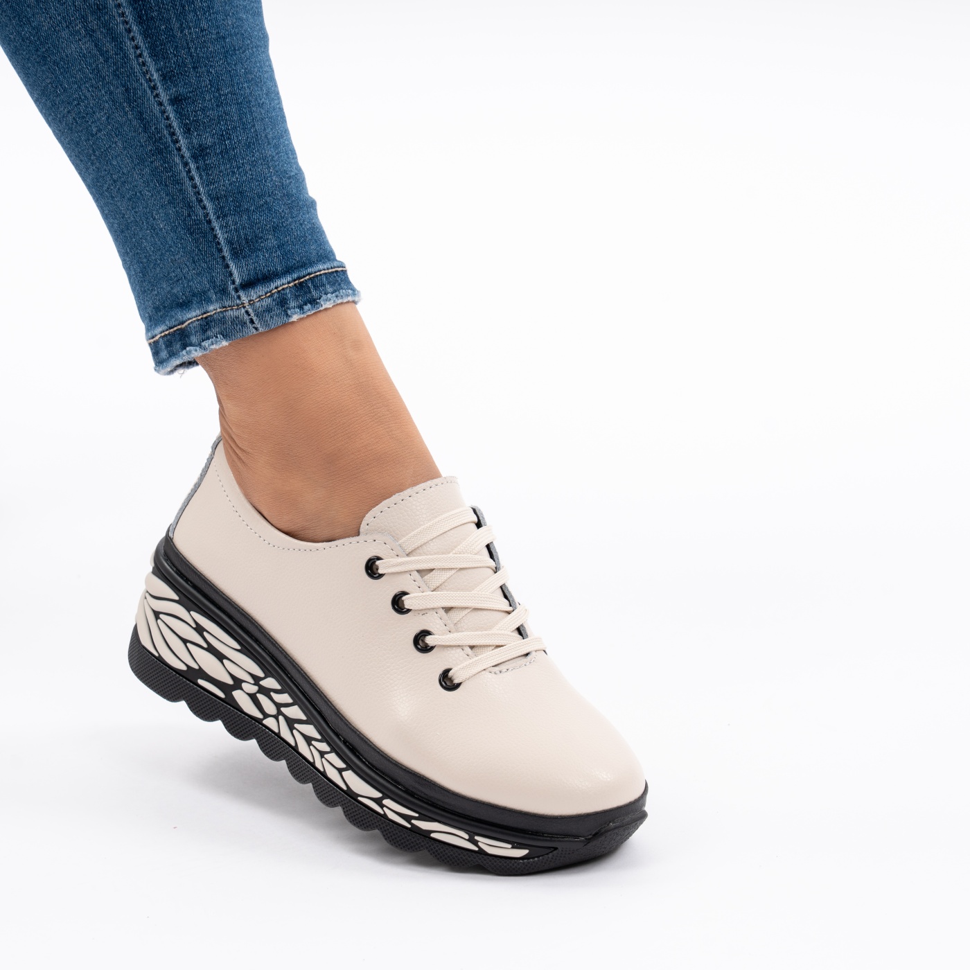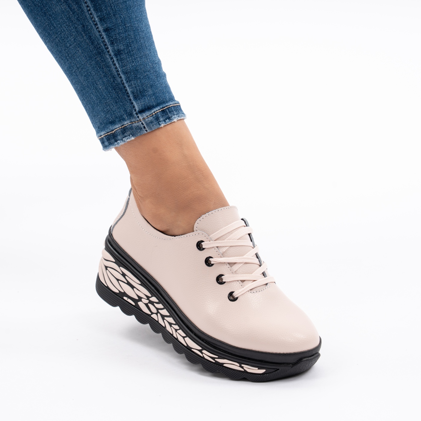 ✅ Culoare: BEJ ✅ Material: piele naturala ✅ Inaltime talpa: 5 cm ✅ Stil: casual ✅ INFO Pantofii din piele naturală cu talpă ortopedică sunt pantofi special proiectați pentru a oferi suport și confort . Acestia sunt confecționați din piele naturală de calitate superioară, care oferă durabilitate și un aspect plăcut.
