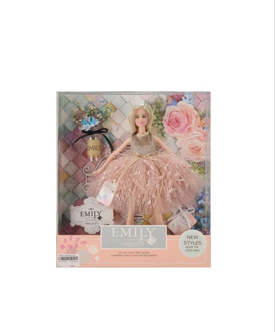 Papusa Emily, este o adevarata stea in lumea jucariilor, cu o prezenta ce radiaza gratie si eleganta. Emily se remarca prin parul sau lung, blond, purtat lejer si accentuat de o tiara stralucitoare, care ii confera un aer regal. Ochii sai albastri mari adauga profunzime si caracter fetei sale frumos modelate, atragand privirile si invocand admiratia. Imbracata intr-o rochie somptuoasa de culoare roz pal, cu un material ce imita penele, Emily emana o eleganta subtila si moderna. Rochia, decorata cu sclipici fin, scanteiaza delicat la fiecare miscare, facand-o sa para ca si cum ar dansa chiar si in cele mai usoare adieri de vant. Aceasta tinuta este completata de pantofi cu toc inalt, care sunt atat de detaliati, incat par desprinsi dintr-o colectie de moda autentica. Papusa Emily nu este doar o jucarie, ci un portal catre lumi de basm, oferind copiilor posibilitatea de a crea povesti si aventuri infinite in care moda si frumusetea joaca roluri principale. Fie ca este vorba de un bal imaginar sau de o plimbare prin gradinile regale, Emily este pregatita sa straluceasca si sa inspire creativitatea in jocurile copiilor. Cu un astfel de design sofisticat si o atentie deosebita pentru detalii, Emily, este mai mult decat o simpla papusa; este o inspiratie pentru tanara generatie de creatori de moda si visatori, facand fiecare moment de joaca o ocazie speciala. Varsta: de la 3 ani
