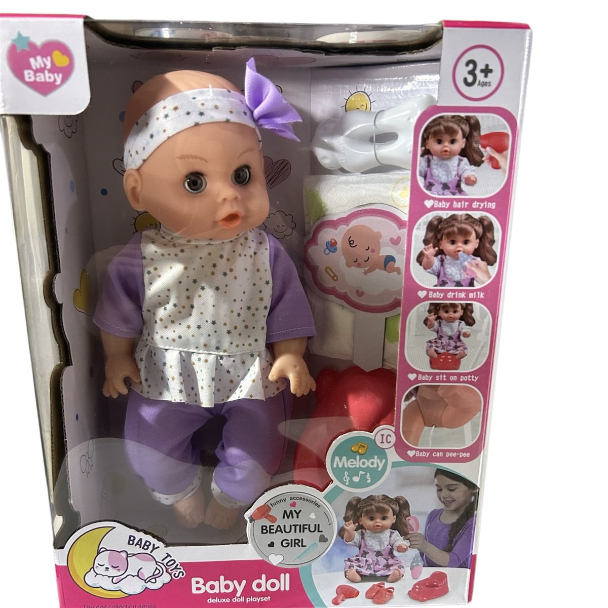 Descoperă bucuria jocului de rol cu păpușa interactivă My Baby, perfectă pentru fetițe de peste 3 ani! Această păpușă realistă vine îmbrăcată într-o ținută adorabilă mov și albă cu imprimeu de steluțe și include accesorii amuzante pentru o experiență completă de îngrijire. Copiii pot hrăni păpușa cu biberonul, o pot așeza pe oliță și pot asculta melodii drăguțe apăsând butonul special. ✅ Funcții interactive: bea lapte, face pipi, cântă melodii. ✅ Accesorii incluse: oliță, biberon, scutec și uscător de păr. ✅ Vârstă recomandată: 3+ ani. ✅ Stimulează imaginația, empatia și responsabilitatea. Această păpușă „My Beautiful Girl” este cadoul ideal pentru orice fetiță care adoră să se joace de-a mama și copilul. Perfectă pentru dezvoltarea abilităților sociale și emoționale prin joacă!
