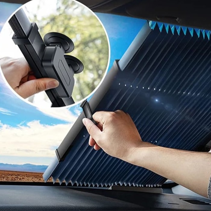 Copertina parasolar auto impotriva razelor UV, fixare prin ventuze Dimensiune disponibila: 70 cm x 110 cm Parasolarul auto antiUV este pur si simplu uimitor! Acest parasolar care blocheaza razele UV este fabricat din aliaj de aluminiu. Parasolarul retractabil este incredibil de versatil! Parasolar auto retractabil, ajustabil, rezistent UV Acest produs este, de asemenea, parasolarul auto cu cea mai rapida aplicare de pe piata! Pur si simplu trageti parasolarul antiUV din partea dreapta spre stanga si fixati-l in pozitie! Parasolarul antiUV esteuper usor de instalat! Fixati ventuzele in partea dreapta a parbrizului. Rotiti butonul pentru a elimina aerul. Introduceti bordura parasolarului in locasul dedicat. Trageti parasolarul de la dreapta la stanga pe toata latimea parbrizului. Parasolarul antiUV este cu adevarat un accesoriu absolut indispensabil pentru toate vehiculele.