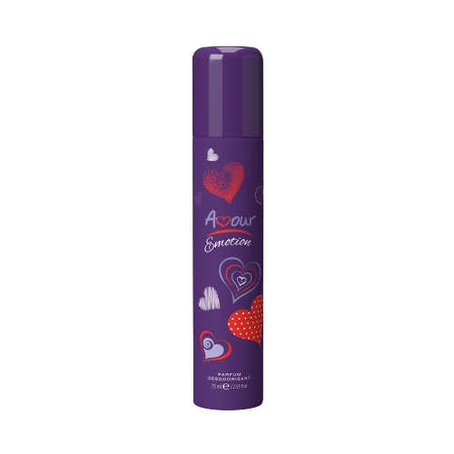 Amour Emotion parfum deodorant dama 75 ml. Deodorantul Amour Emotion incorporeaza beneficiile unui parfum Oriental . Notele de varf sunt portocala, lamaie si bergamot; Nota de mijloc este fructe; Notele de baza sunt ambra, mosc alb si vanilie de Madagascar.