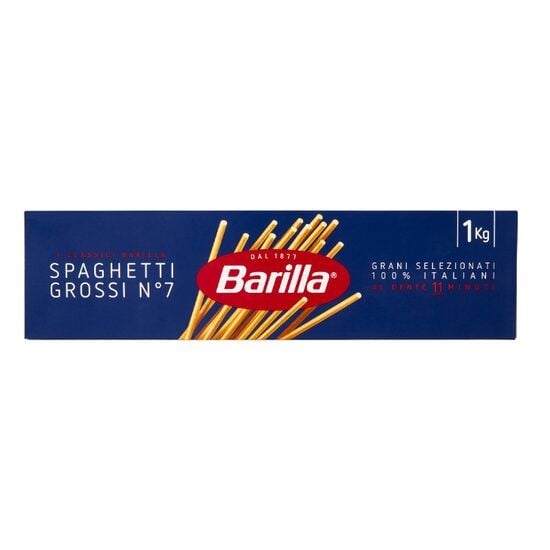 Spaghettoni n.7 Barilla sunt un tip de paste italiene tradiționale, apreciate pentru textura lor consistentă și capacitatea de a absorbi perfect sosurile. Cu o formă mai groasă și mai lungă decât spaghetele standard, aceste paste sunt ideale pentru preparate care necesită un timp de fierbere mai lung sau sosuri dense. Ambalate în pachet de 1000g, sunt perfecte pentru o masă generoasă în familie sau pentru a servi oaspeți. Fabricate din grâu de calitate superioară, spaghettoni Barilla sunt ideale pentru a fi gătite al dente, oferind o experiență autentic italiană la fiecare înghițitură.Mod ambalare 12/Bax