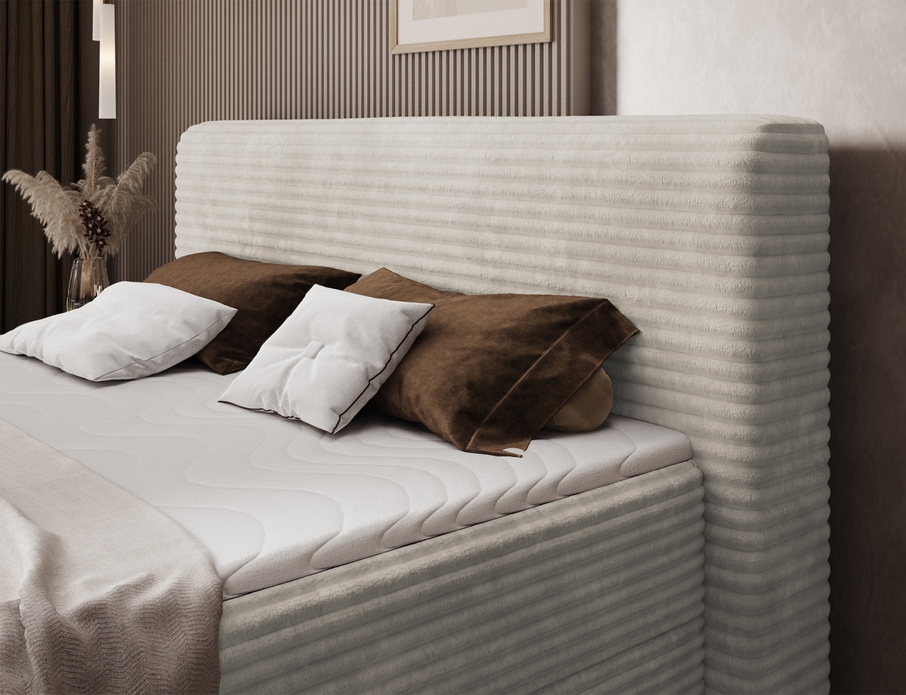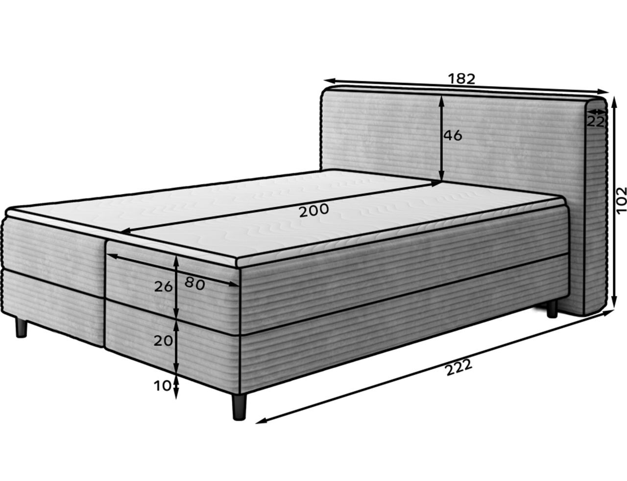Patul continental Cortiko este o alegere elegantă și confortabilă pentru iubitorii stilului modern. Disponibil în trei variante de dimensiuni: 140x200 cm, 160x200 cm și 180x200 cm. Înălțimea totală a patului este de 102 cm, iar adâncimea de 222 cm, oferind o structură stabilă și echilibrată. Combinația dintre arcurile Bonell și spuma T2540 asigură un suport excelent pentru corp și un confort ridicat în timpul somnului. Modelul Cortiko este echipat cu un compartiment practic pentru depozitarea lenjeriei, care ajută la menținerea ordinii și la utilizarea eficientă a spațiului din dormitor. Picioarele negre din lemn completează designul, adăugând eleganță și lejeritate. Cu un design modern, patul Cortiko se potrivește perfect atât în interioare minimaliste, cât și în amenajări mai expresive, devenind un element stilat și funcțional al oricărui dormitor. Dimensiuni: Lățime: 202 cm Lungime: 222 cm Înălțime: 102 cm Înălțime șezut: 56 cm Suprafață dormit: 180x200 cm Înălțime picioare: 10 cm Recipient depozitare lenjerie de pat: 2x 182x86x15 cm Spătar tapițat: nu Capacitate ridicare: 260 kg Produsul nu este montat, montarea este rapidă și ușoară. Produsul este personalizabil, culoarea și materialul se aleg pe baza paletarelor la cererea clientului. Prețul poate suferi modificări în funcție de grupa de material aleasă.