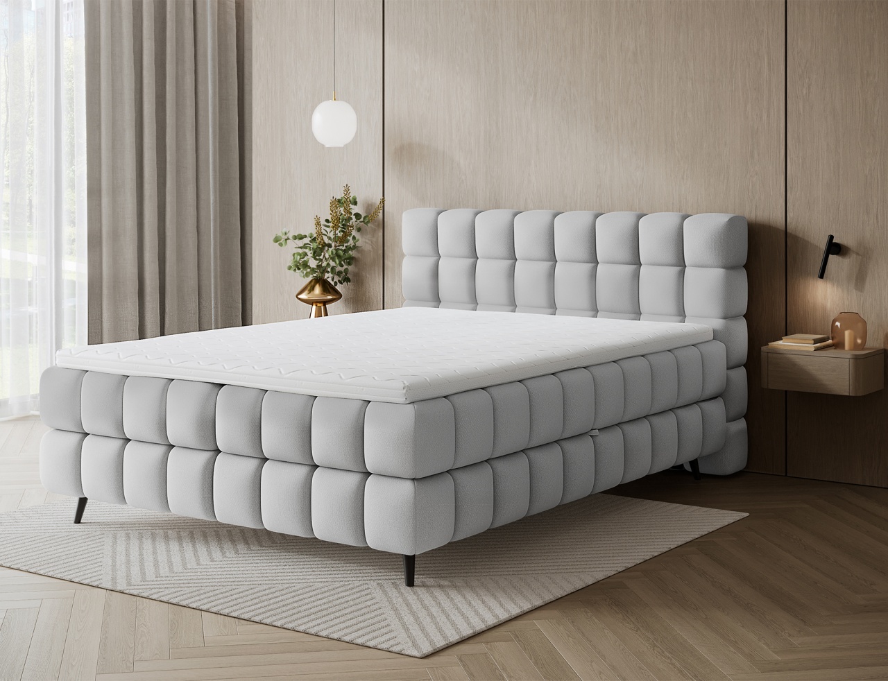 Patul continental Sabeno este o alegere elegantă și funcțională pentru orice dormitor modern. Modelul este disponibil în trei variante de dimensiuni: 140x200 cm, 160x200 cm și 180x200 cm, permițându-vă să ajustați lățimea patului în funcție de nevoile individuale. Confortul în timpul somnului este asigurat de combinația dintre arcurile Bonell și spuma T2540, care oferă susținere adecvată și durabilitate. Patul Sabeno este echipat cu un compartiment practic pentru depozitarea lenjeriei. Picioarele negre din lemn completează designul, adăugând eleganță subtilă și lejeritate. Stilul modern al patului Sabeno îl face să se potrivească perfect atât în interioare minimaliste, cât și în amenajări mai expresive. Datorită funcționalității, materialelor de înaltă calitate și finisajului estetic, patul continental Sabeno este alegerea ideală pentru cei care apreciază confortul, durabilitatea și mobilierul de dormitor stilat. Dimensiuni: Lățime: 202 cm Lungime: 222 cm Înălțime: 102 cm Înălțime șezut: 56 cm Suprafață dormit: 180x200 cm Înălțime picioare: 10 cm Recipient depozitare lenjerie de pat: 2x 182x86x15 cm Spătar tapițat: nu Capacitate ridicare: 260 kg Produsul nu este montat, montarea este rapidă și ușoară. Produsul este personalizabil, culoarea și materialul se aleg pe baza paletarelor la cererea clientului. Prețul poate suferi modificări în funcție de grupa de material aleasă.
