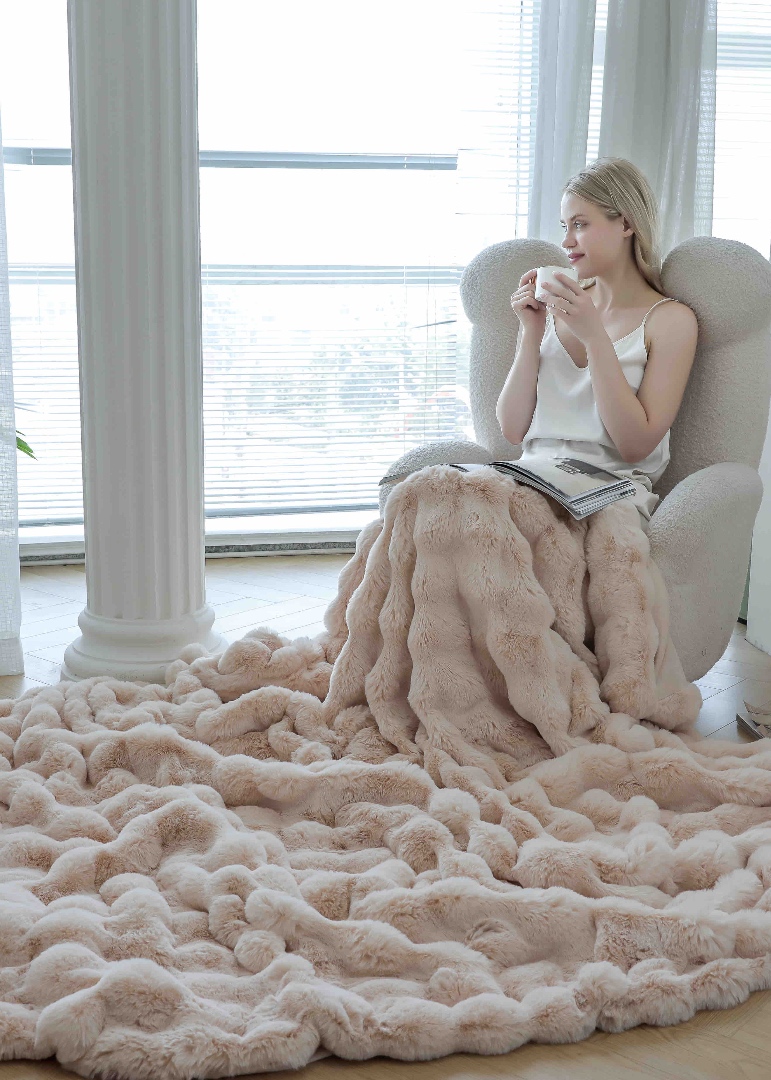 Patura cu Blanita Artificiala Tip Iepure, cu Fermoar – 200 x 230 cm Alege o patura care imbina rafinamentul estetic cu functionalitatea moderna. Realizata din blanita artificiala de tip iepure, extrem de moale si placuta la atingere, aceasta patura este ideala pentru serile racoroase, decor sofisticat sau un cadou cu adevarat special. Caracteristici principale: Dimensiuni generoase:- 200 x 230 cm – perfecta pentru canapea, pat matrimonial sau pentru a te inveli complet in serile re