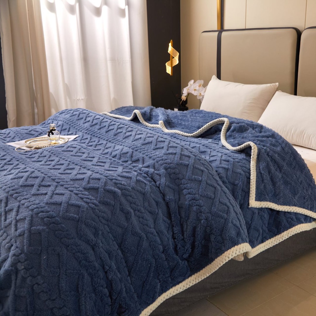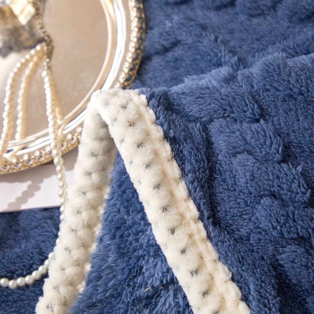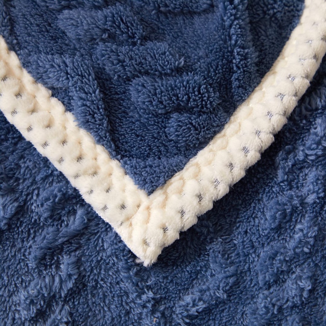 Patura Premium, 200x230cm, CoCoLiNo, Grofata, cu Model 3D Tip Tricotaj si Bordura din Blanita Contrastanta – Eleganta si Caldura Absoluta, Bleumarin