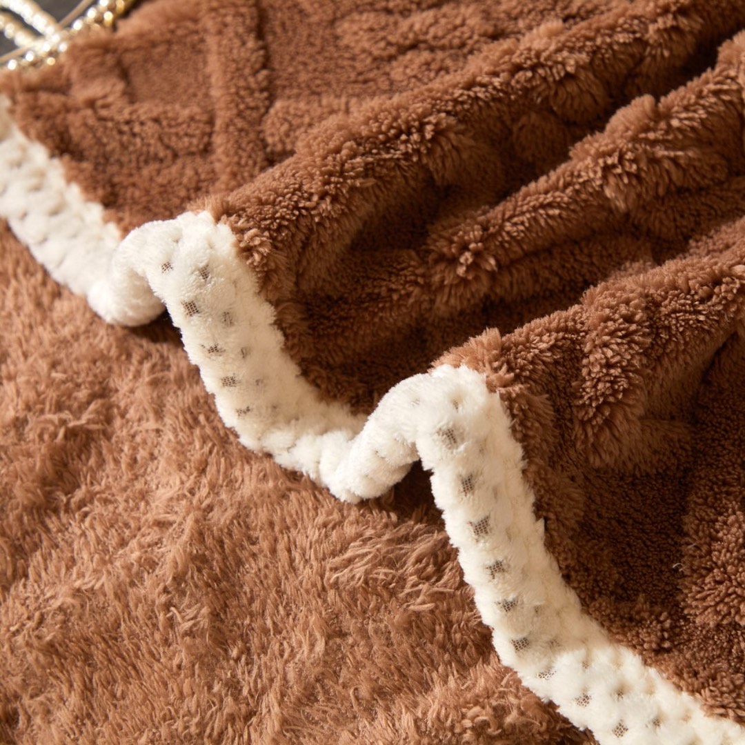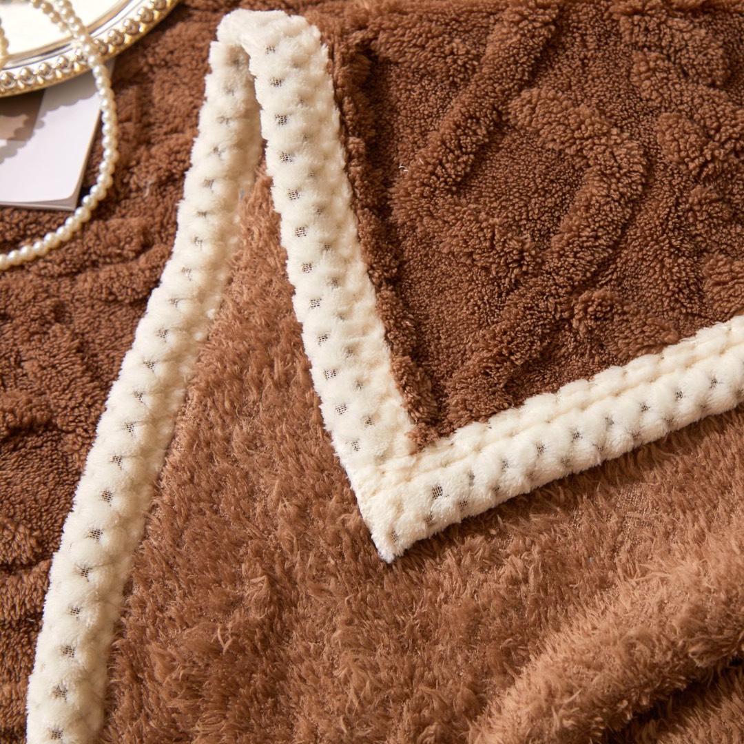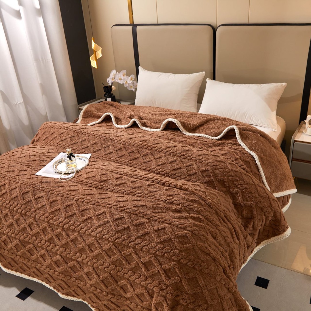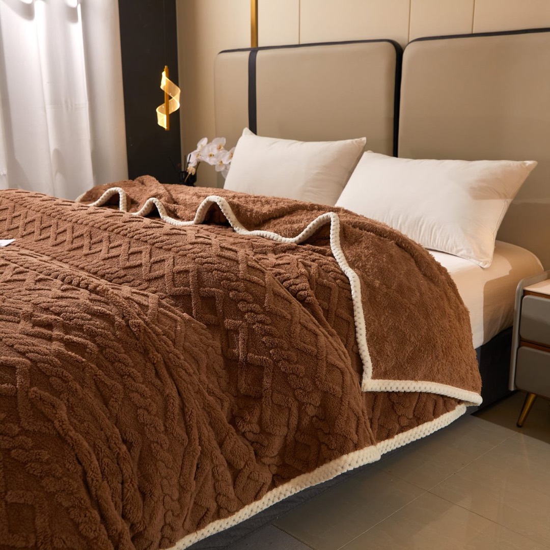 Patura Premium, 200x230cm, CoCoLiNo, Grofata, cu Model 3D Tip Tricotaj si Bordura din Blanita Contrastanta – Eleganta si Caldura Absoluta, Maro
