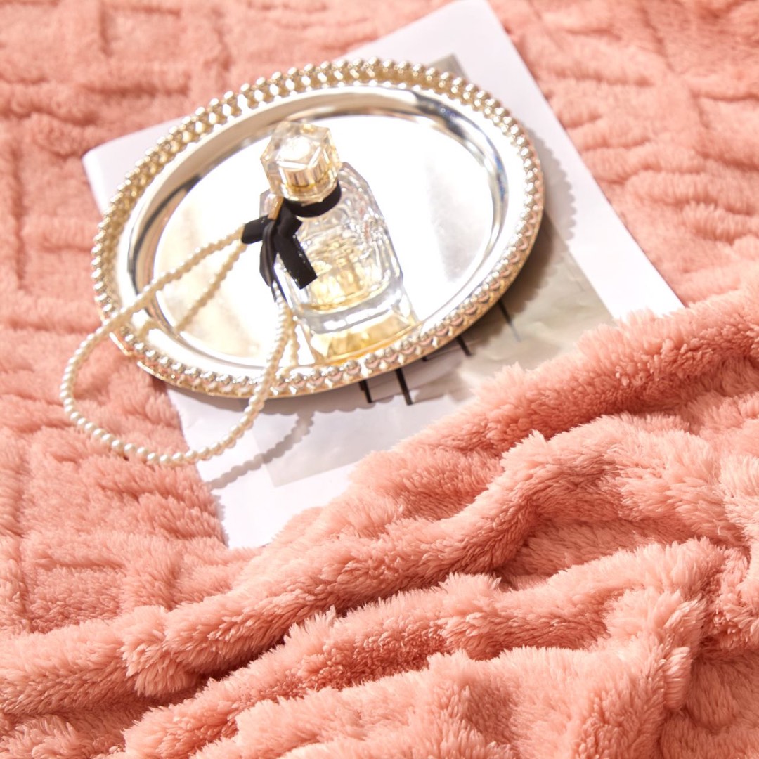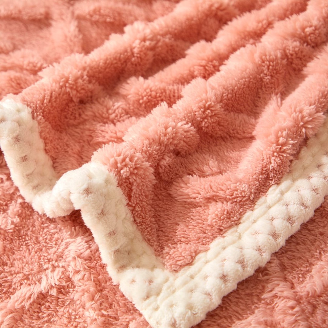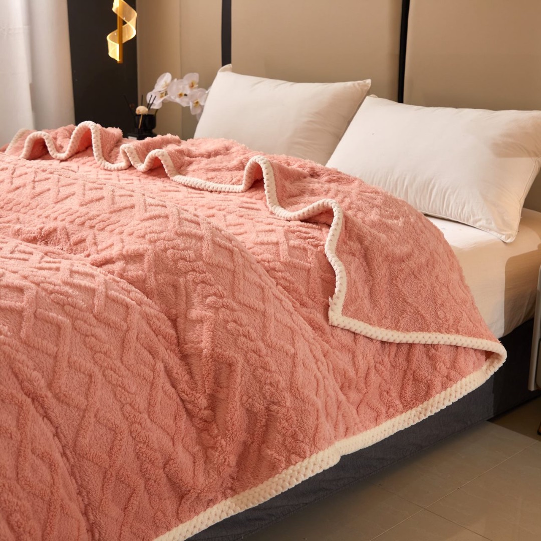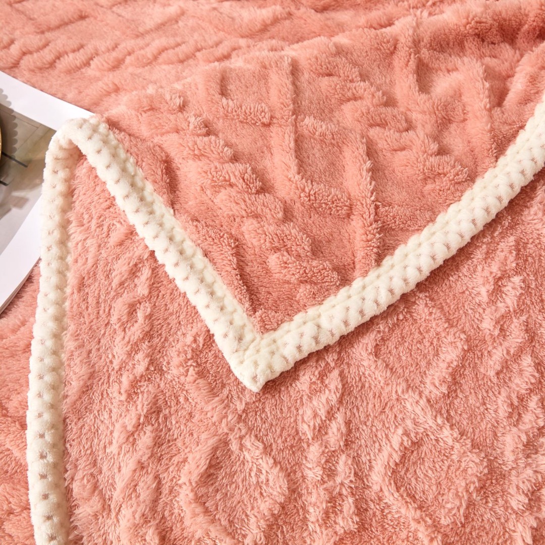 Patura Premium, 200x230cm, CoCoLiNo, Grofata, cu Model 3D Tip Tricotaj si Bordura din Blanita Contrastanta – Eleganta si Caldura Absoluta, Somon