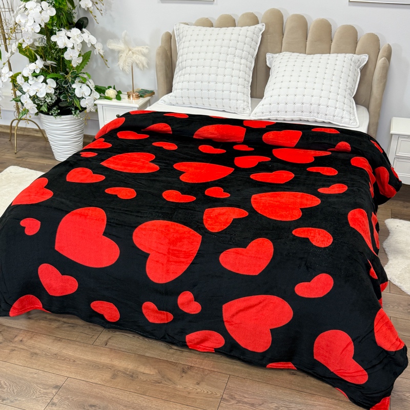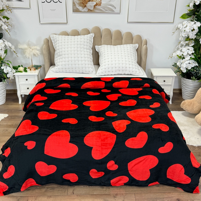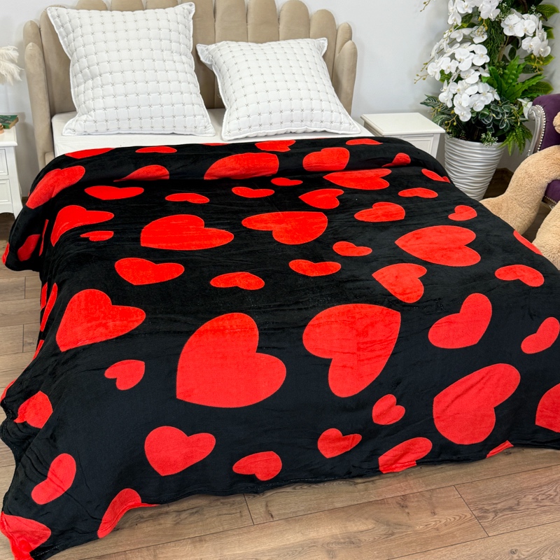 | Patura pufoasa cocolino 200x230cm, 240g/mp, Negru, Inimioare Rosii • cumparamisim.ro | 49.00 RON |