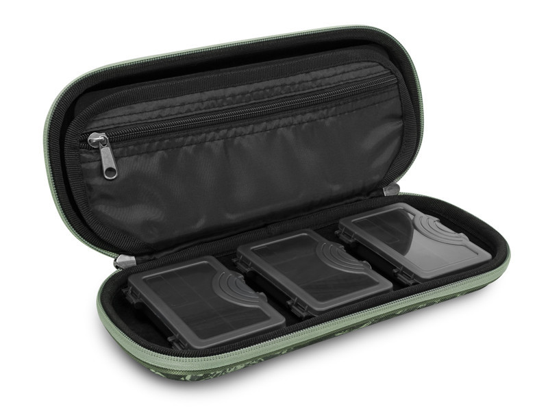 RigLux Space C2G este un penar din gama de lux a producatorului Delphin, fabricat din polyester 100%, special conceput pentru stocarea in siguranta a rigurilor si accesoriilor de pescuit. Penarul cu doua fete este echipat la interior cu o placa rigida din spuma EVA (26x10x1cm), pe care se pot fixa pana la 10 de riguri. Pinii de fixare cu gamalie (in numar de 10) va ajuta sa pastrati rigurile tensionate si ordonate. Bara de tensionare din interiorul placii rigide protejeaza eficient varfurile carligelor impotriva deteriorarii. Partea dreapta a penarului contine 3 cutii independente (10x7x2.5cm) pentru depozitarea accesoriilor terminale cum ar fi: varteje, agrafe, clipsuri, conuri, bilute antisoc etc. Caracteristici: Dimesiuni: 30x13x8cm; Material: polyester 100%; Fermoar cu snur de prindere. Culoare: C2G. Penarul contine: 3 x cutii accesorii (10x7x2.5cm); 1 x placa rigida din spuma EVA (26x10x1cm); 1 x separator intern cu fermoar; 10 x pini de fixare a rigurilor.