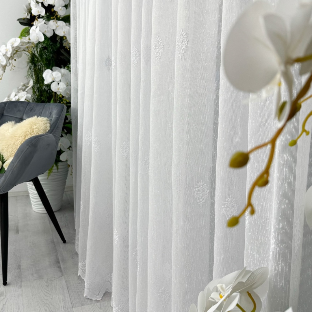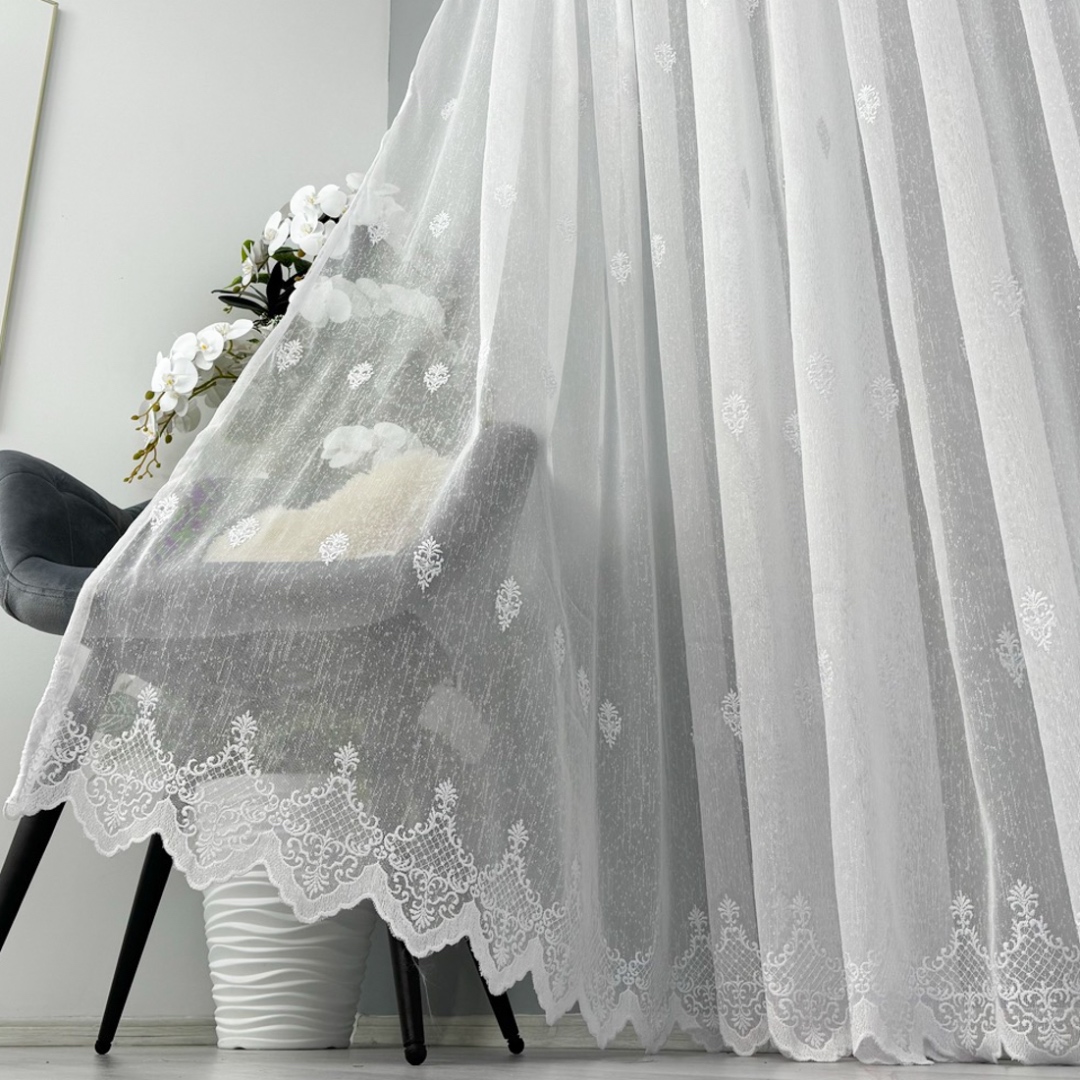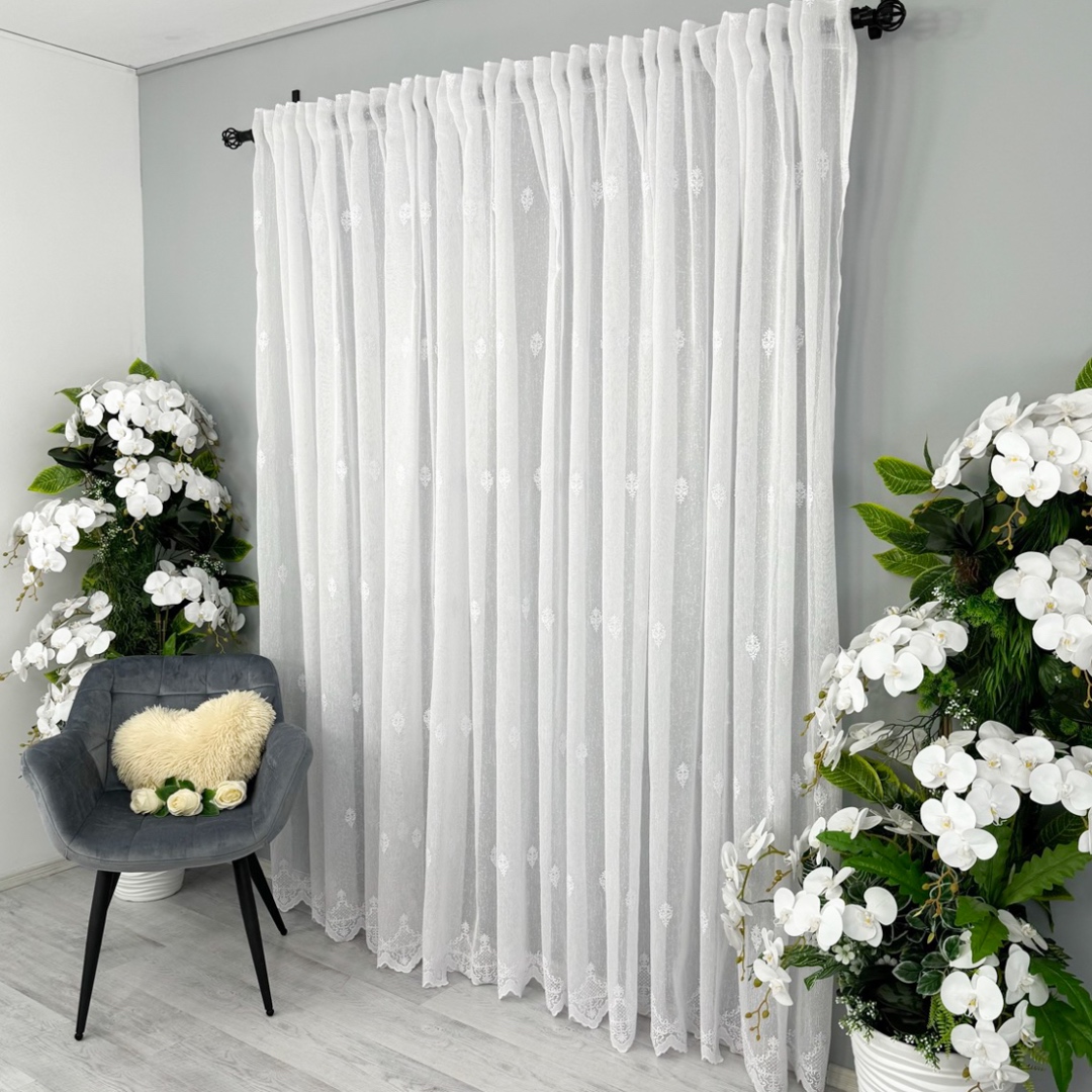 Perdea Alicia tip IN Brodat, Alb, 140cm latime x 260cm inaltime, cu rejansa pt bara