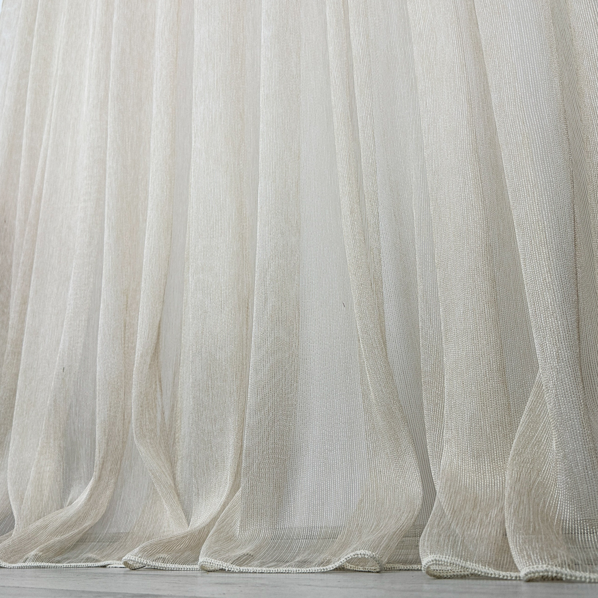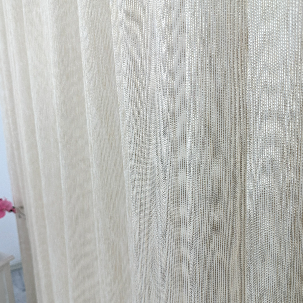 Perdea din matase cu textura tip in, dimensiune standard, cu rejansa pt bara. COMPOZITIA MATERIALULUI:  100% poliester CONTINUTUL PACHETULUI: perdea, pe dimensiune standard - 1 bucata 140x260cm.INTRETINEREA PRODUSULUI: Se spala la max. 30°C si se calca la temperatura normala, cu abur. Nu se recomanda spalarea cu inalbitori chimici si nici uscarea prin centrifugare. Inainte de prima utilizare, recomandam spalarea draperiilor, pentru a elimina eventualele impuritati si urme de praf. SIST