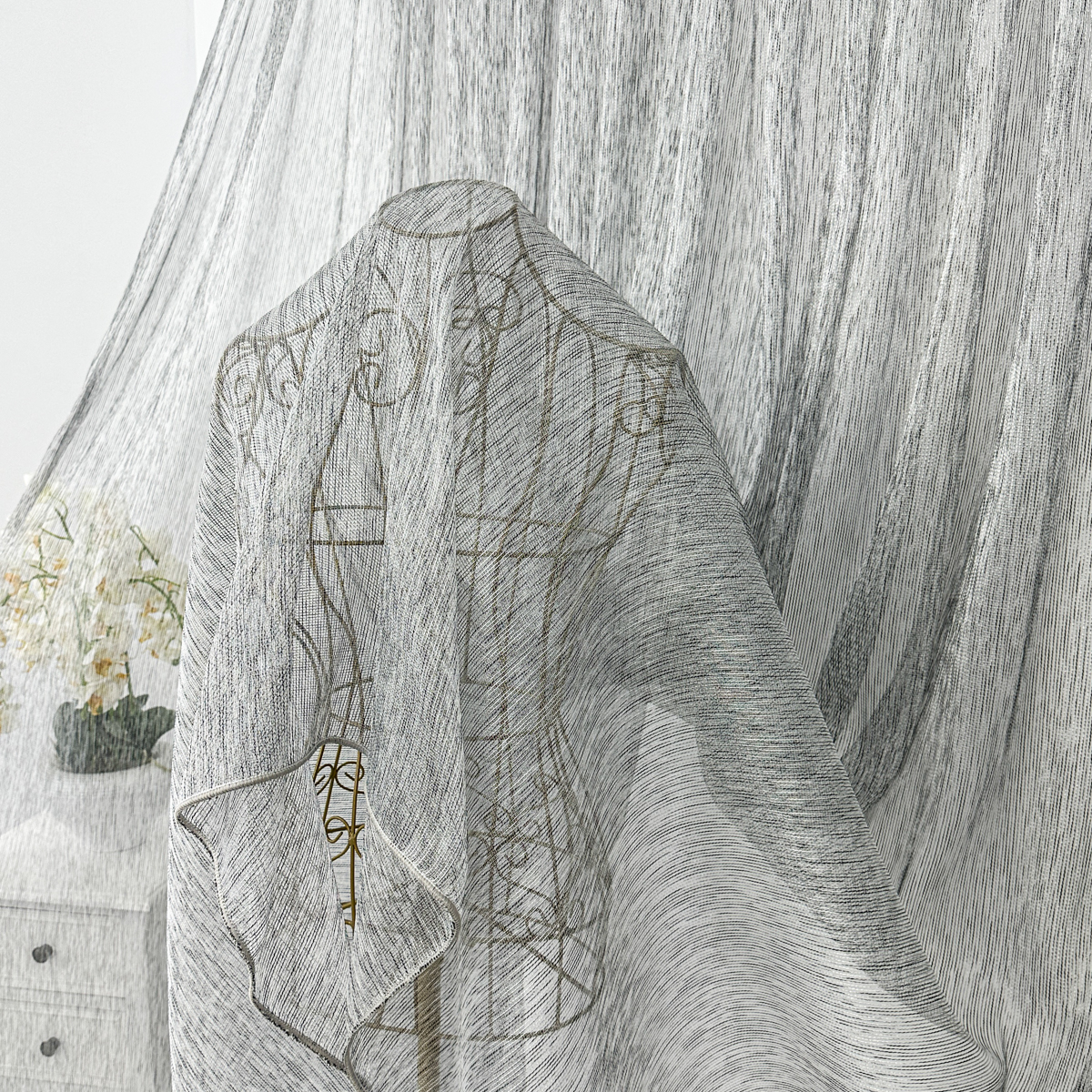 Perdea matase cu textura tip in , dimensiune standard, cu rejansa pt bara. COMPOZITIA MATERIALULUI: 100% poliester CONTINUTUL PACHETULUI: perdea, pe dimensiune standard - 1 bucata 100x260cm.INTRETINEREA PRODUSULUI: Se spala la max. 30°C si se calca la temperatura normala, cu abur. Nu se recomanda spalarea cu inalbitori chimici si nici uscarea prin centrifugare. Inainte de prima utilizare, recomandam spalarea draperiilor, pentru a elimina eventualele impuritati si urme de praf. SISTEM