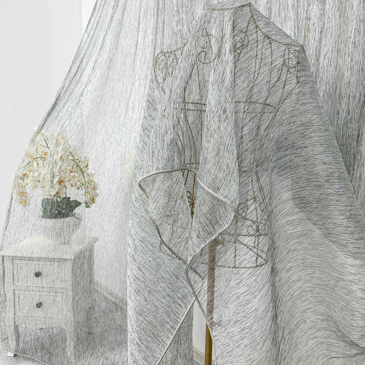 Perdea matase cu textura tip in , dimensiune standard, cu rejansa pt bara. COMPOZITIA MATERIALULUI: 100% poliester CONTINUTUL PACHETULUI: perdea, pe dimensiune standard - 1 bucata 140x260cm.INTRETINEREA PRODUSULUI: Se spala la max. 30°C si se calca la temperatura normala, cu abur. Nu se recomanda spalarea cu inalbitori chimici si nici uscarea prin centrifugare. Inainte de prima utilizare, recomandam spalarea draperiilor, pentru a elimina eventualele impuritati si urme de praf. SISTEM