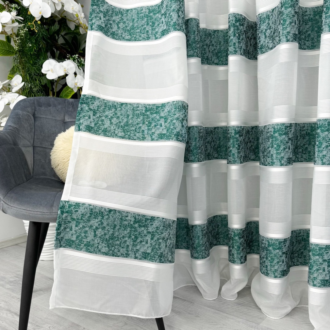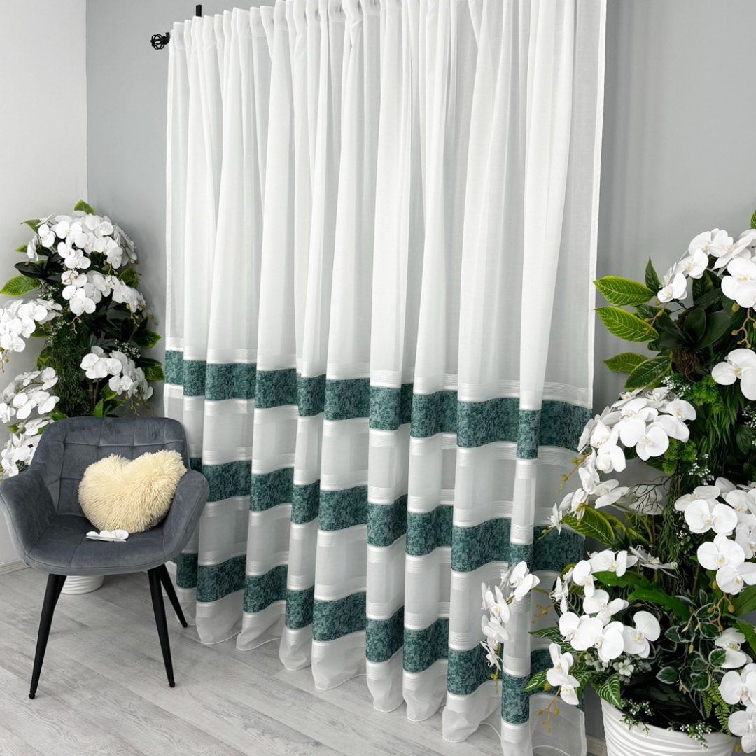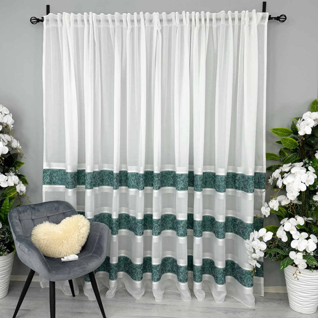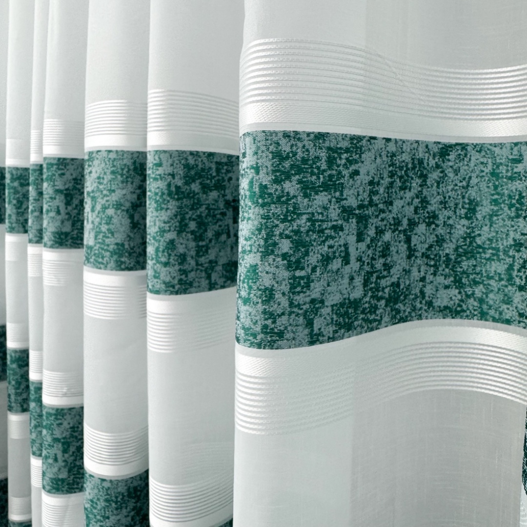 Perdea Cristal tip IN plin, Alb-Verde, model gheata, 140cm latime x 260cm inaltime, cu rejansa pt bara
