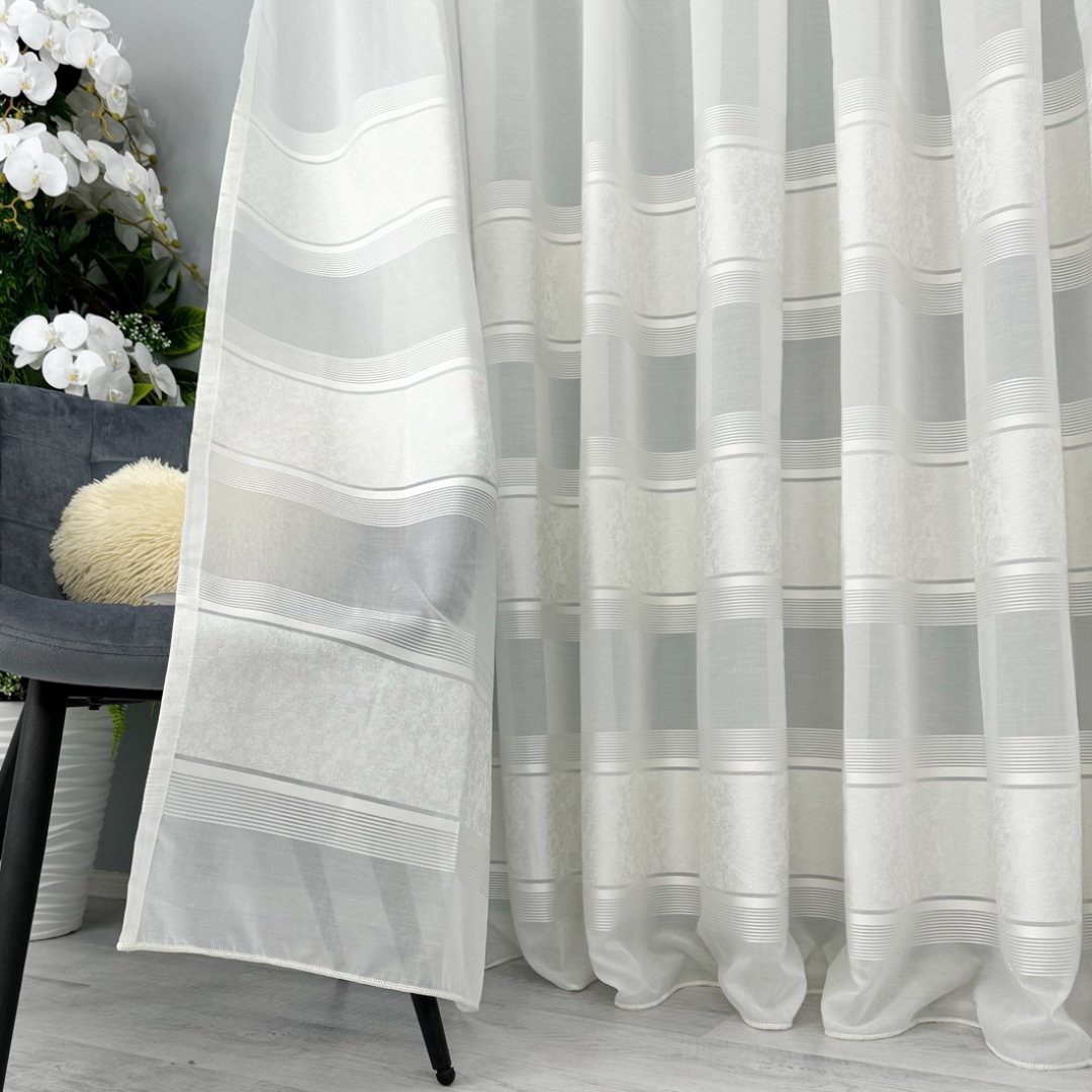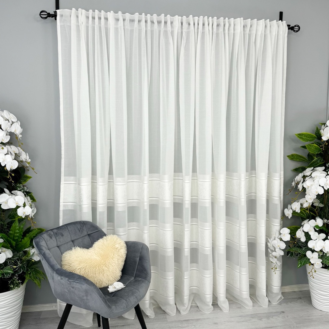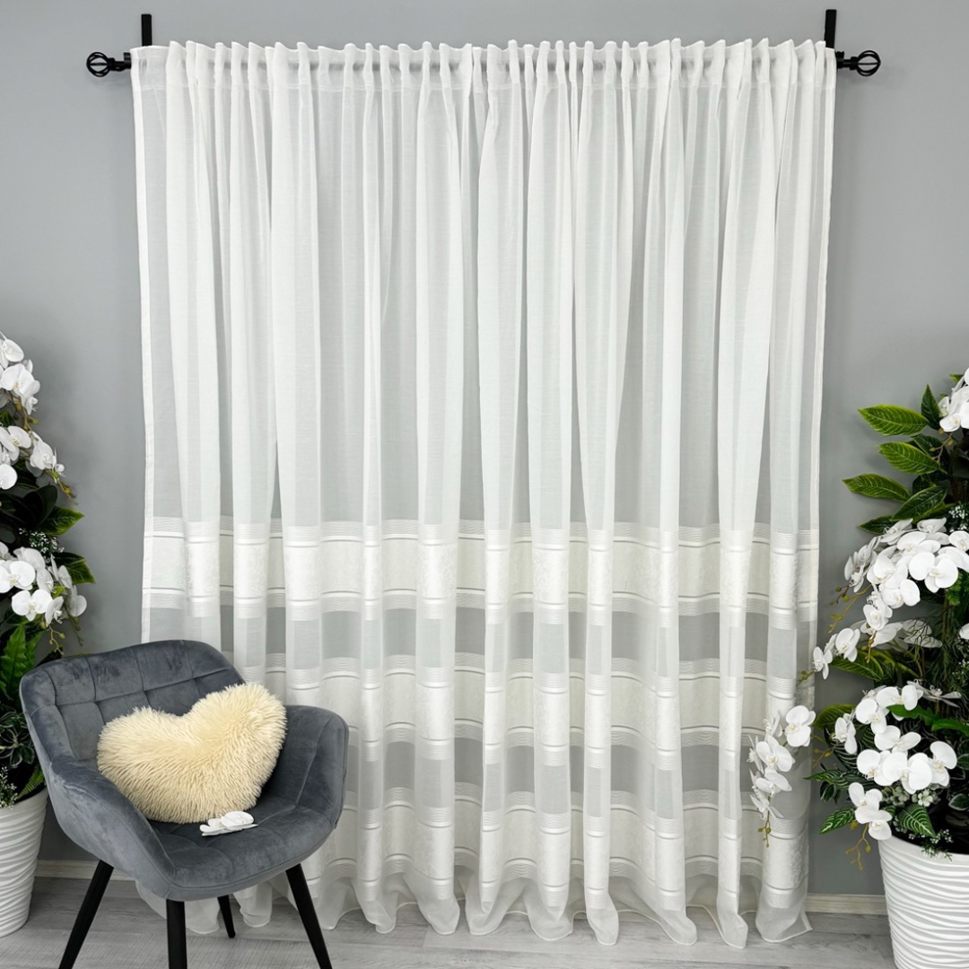 Perdea Cristal tip IN plin, Ivoire, model gheata, 140cm latime x 260cm inaltime, cu rejansa pt bara