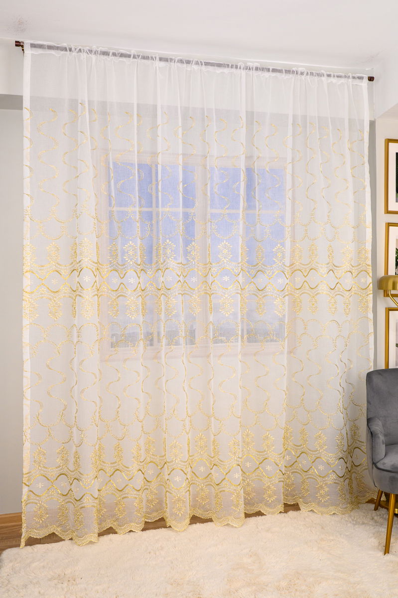 Alege Perdelele Realizate la Comanda la dimensiunile alese de tine, pentru ca meriti o casa mai frumoasa! Cauti acel detaliu special care sa aduca viata si personalitate casei tale? Perdelele noastre sunt raspunsul perfect. Cu o gama variata de culori, texturi si stiluri, poti sa-ti personalizezi spatiul asa cum doresti. Fie ca iti doresti mai multa intimitate, sa reglezi lumina naturala sau sa adaugi un element de design elegant, perdelele noastre sunt alegerea potrivita. Aceasta perdea eleganta adauga rafinament si stil locuintei tale, oferind, in acelasi timp, functionalitate si un ambient placut. Descopera detaliile si caracteristicile acestei perdele deosebite. Detalii privind produsulPerdea Realizata la Comanda la dimensiunile alese de tine. Latime: Poate fi aleasa in functie de dimensiunea dorita de tine. In functie de cat de incretita iti doresti perdeaua, recomandarea noastra este minim 2x dimensiunea galeriei sau a sinei.   Inaltime: Poate fi aleasa in functie de inaltimea camerei, dar nu mai mare de 2.7 metri. Pot fi exceptii la perdelele fara model sau imprimeu (matase, voal, in). In cazul in care doriti o alta dimensiune, anuntati-ne si incercam sa va ajutam. Textura Tip: In cu Broderie Compozitie Material: 100% Microfibra Sistem de Prindere: Galerie (Bara), Sina (folosind clestisori - nu sunt inclusi)Rejansa: In functie de preferinte. Vezi detaliile de la fiecare tip de prindere de mai sus.  Bine de stiut:Locuri Recomandate de Utilizare: Aceasta perdea este potrivita pentru living, dormitor sau oricare alt spatiu in care doresti sa aduci o nota de eleganta.Prindere si Incretire: Perdelele sunt gata lucrate. Sistemul de prindere poate fi Multifunctional (in functie de optiunile alese de tine, fiind compatibil cu galerii (bare) sau sine, oferindu-ti optiuni variate pentru montare).Compozitie Material: Realizata din 100% microfibra, aceasta perdea este fina si rezistenta in acelasi timp.Recomandare: Inainte de prima utilizare, este recomandata spalarea perdelei cu grija pentru a mentine aspectul sau deosebit.Spalare: Poate fi spalata la masina, program scurt, la maximum 30 de grade Celsius.Ingrijire: Nu se utilizeaza inalbitori. Nu se usuca la uscator. Se calca la temperatura normala cu abur. Livrare: Perdelele si draperiile la comanda sunt produse personalizate, lucrate special pentru tine, astfel, in majoritatea cazurilor nu vor ajunge a doua zi, dar tot le vei primi rapid, livrarea pentru ele se face in aproximativ 2-4 zile lucratoare. Ca sa stii mai concret cat de aproape sunt de tine, vei primi un mesaj cand sunt pregatite sa porneasca spre tine, iar incepand cu urmatoarea zi vor fi in procesul de livrare.Important: Responsabilitatea de a masura si a ne furniza dimensiunile corecte este a ta, noi te vom suna dupa plasarea comenzii pentru a confirma inca o data dimensiunile produselor pentru ca, nu putem primi inapoi produsele personalitate realizate la comanda special pentru tine. Noi lucram perdelele si draperiile cu dimensiunile pe care ni le dai, cele trecute in formularul de comanda si confirmate telefonic sunt cele finale care vor ajunge la tine. Ne dorim sa fim cât mai aproape de dimensiunile date de tine, dar lucrând cu dimensiuni mici (centimetri, milimetri) este important sa stii ca marja de eroare pe care o avem este de +/- 5 cm.Nota: Pozele afisate sunt cu titlu de prezentare si au scop comercial. Pot exista mici diferente de nuanta si de incadrare a imprimeului. Pozele sunt realizate de catre noi, in Atelierul Harnicutei.
