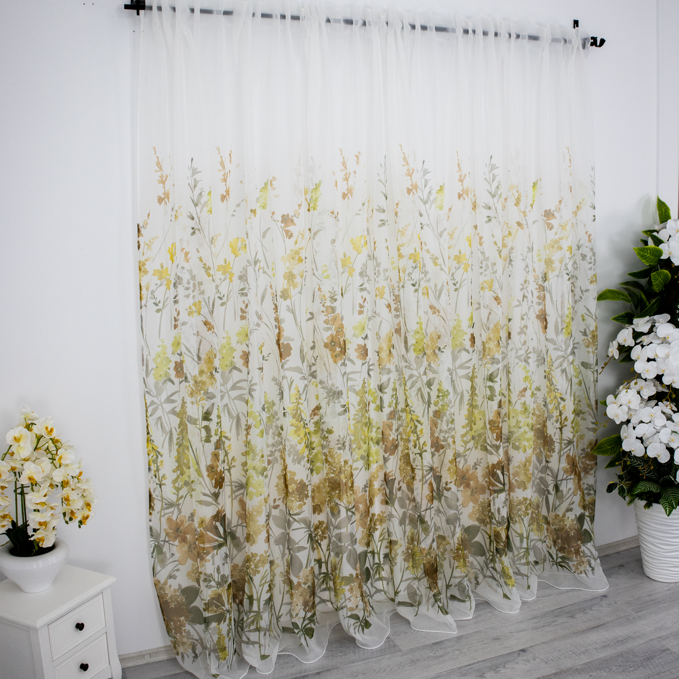 Perdea din matase imprimata, dimensiune standard, cu rejansa pt bara. COMPOZITIA MATERIALULUI: 100% poliester CONTINUTUL PACHETULUI: perdea, pe dimensiune standard - 1 bucata 100x260cm.INTRETINEREA PRODUSULUI: Se spala la max. 30°C si se calca la temperatura normala, cu abur. Nu se recomanda spalarea cu inalbitori chimici si nici uscarea prin centrifugare. Inainte de prima utilizare, recomandam spalarea draperiilor, pentru a elimina eventualele impuritati si urme de praf. SISTEM DE PR