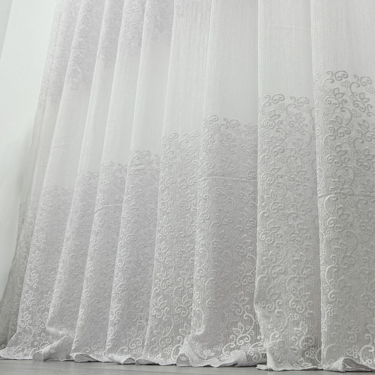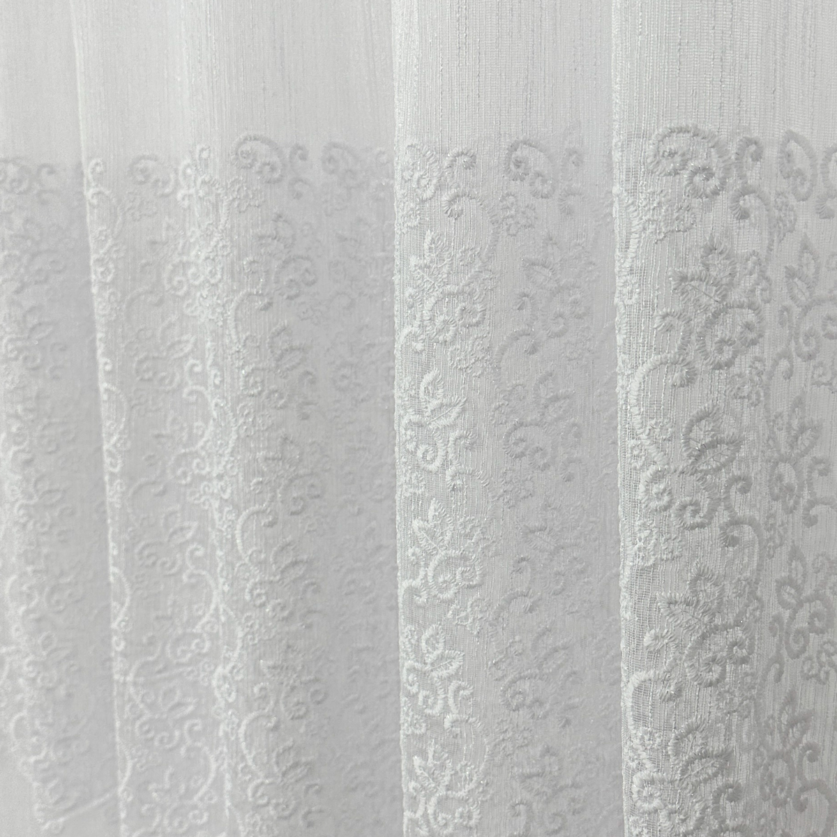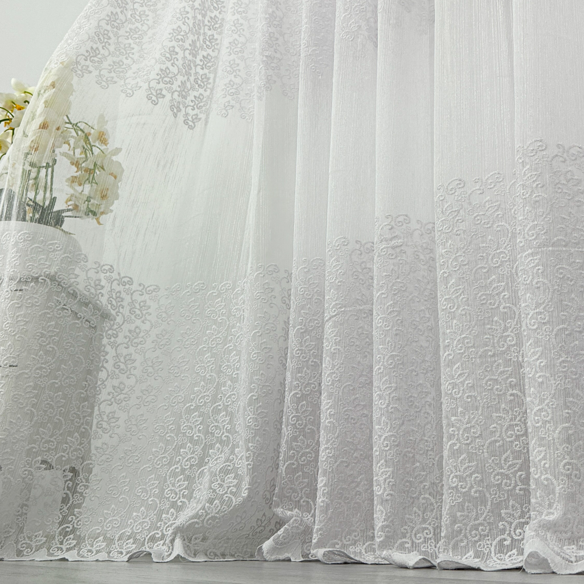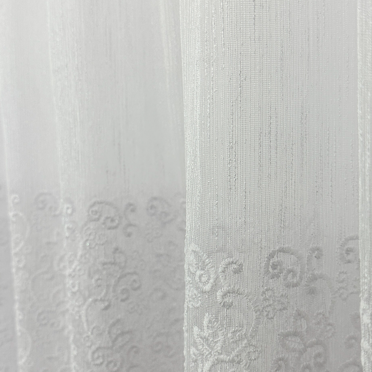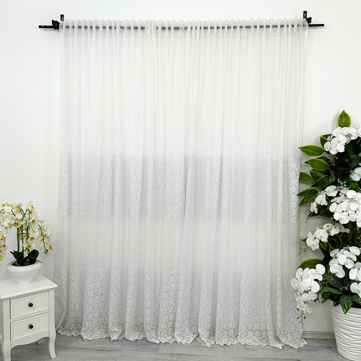 Perdea Florice tip IN cu Broderie, Alb, 100cm latime x 260cm inaltime, cu rejansa pt bara