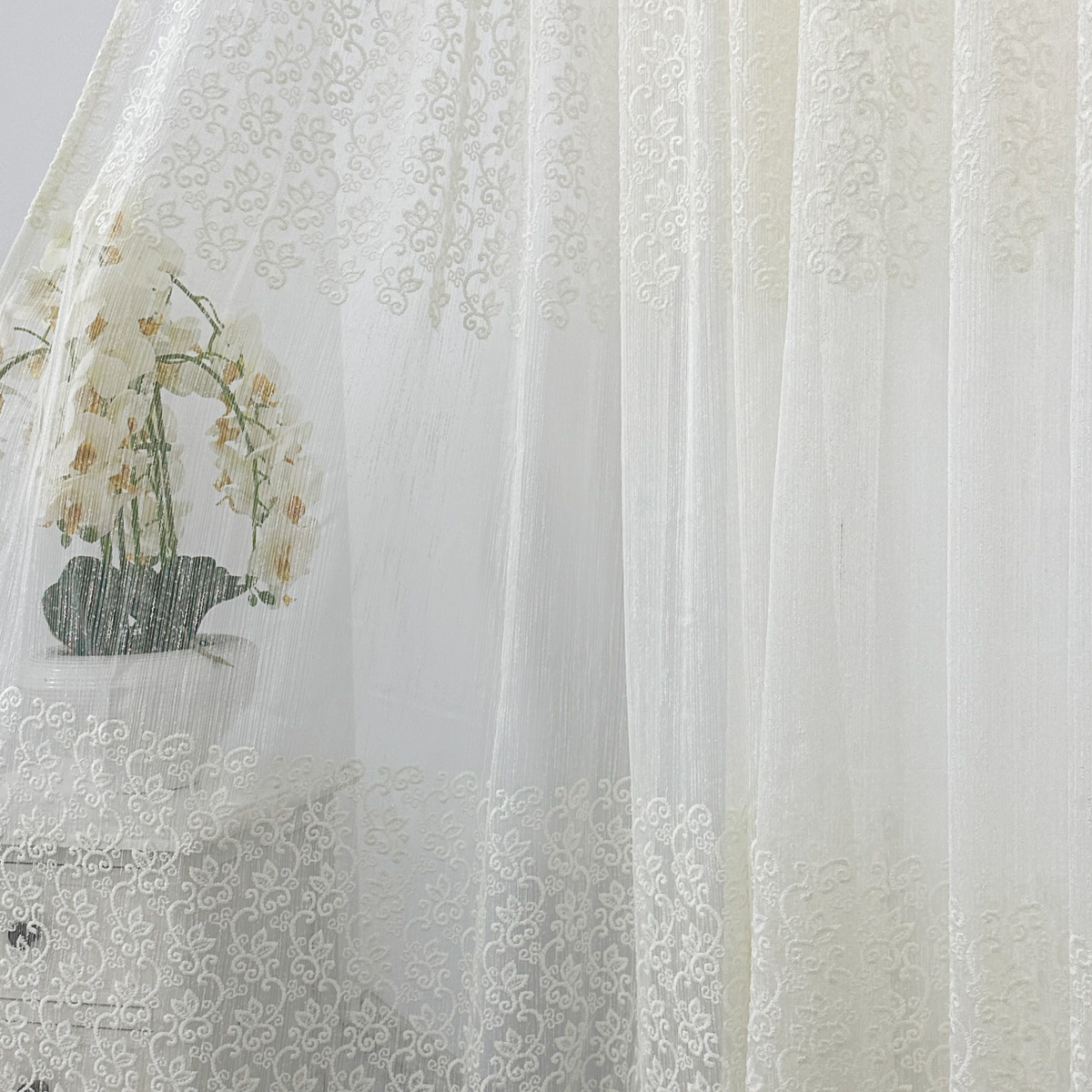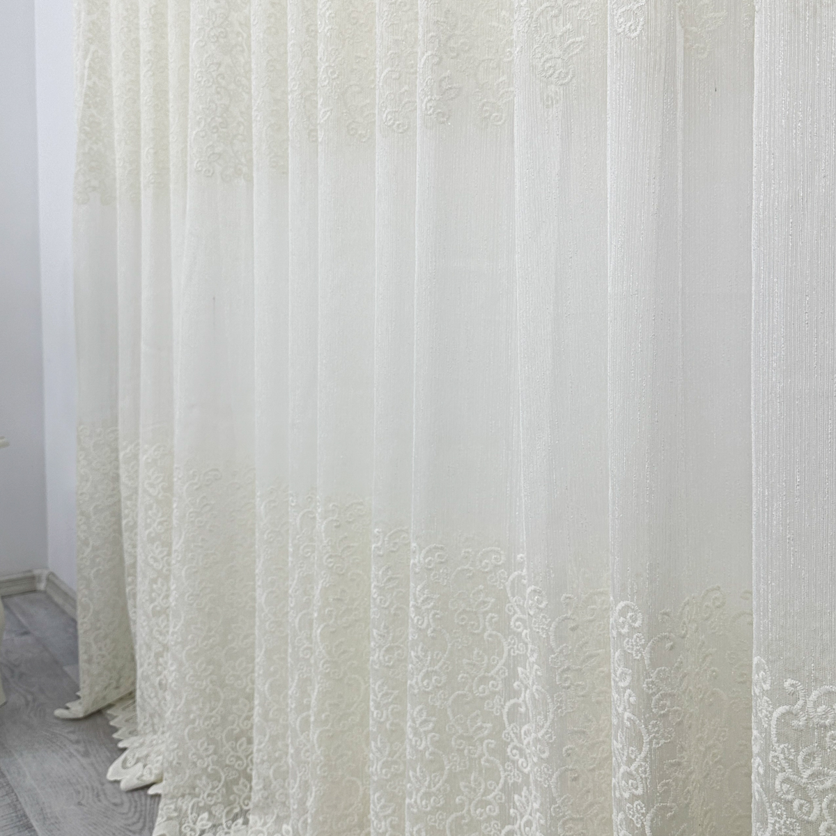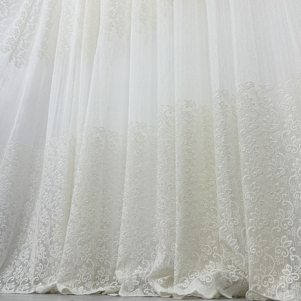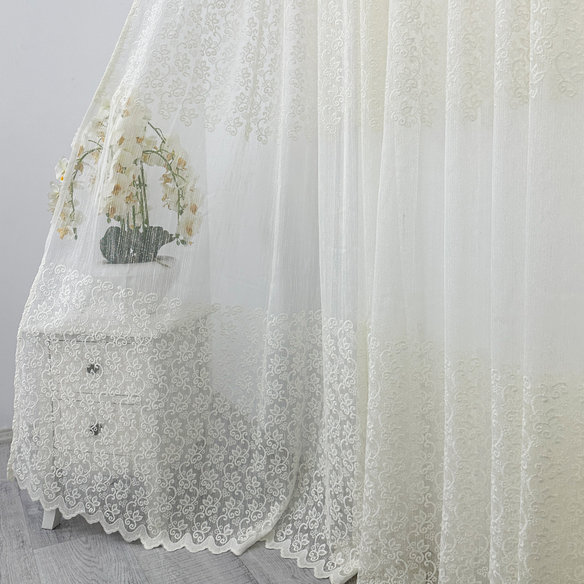 Perdea cu textura tip in cu broderie, dimensiune standard, cu rejansa pt bara. COMPOZITIA MATERIALULUI: 100% poliester CONTINUTUL PACHETULUI: perdea, pe dimensiune standard - 1 bucata 140x260cm.INTRETINEREA PRODUSULUI: Se spala la max. 30°C si se calca la temperatura normala, cu abur. Nu se recomanda spalarea cu inalbitori chimici si nici uscarea prin centrifugare. Inainte de prima utilizare, recomandam spalarea draperiilor, pentru a elimina eventualele impuritati si urme de praf. SIS