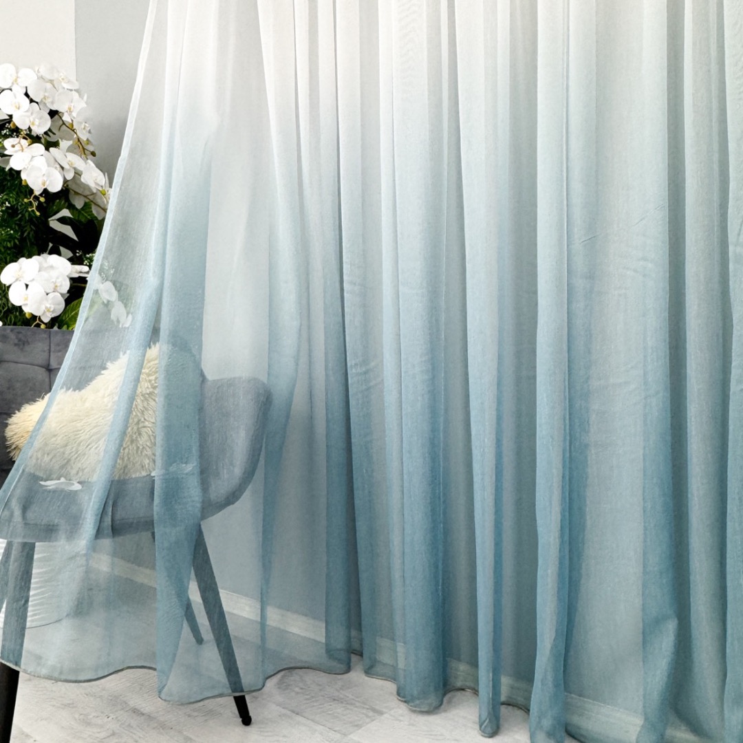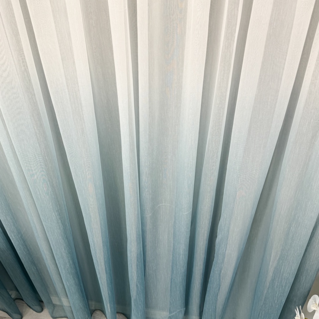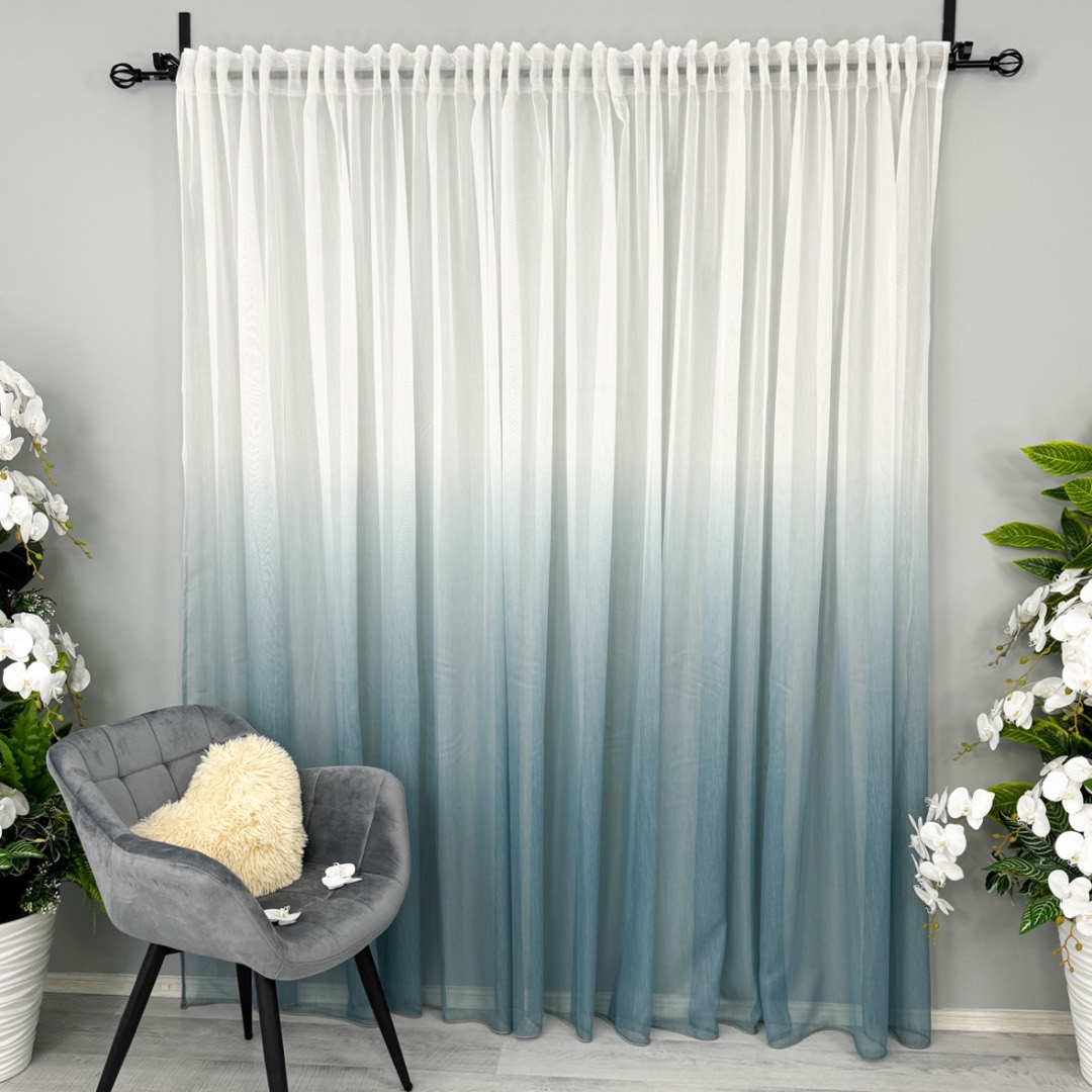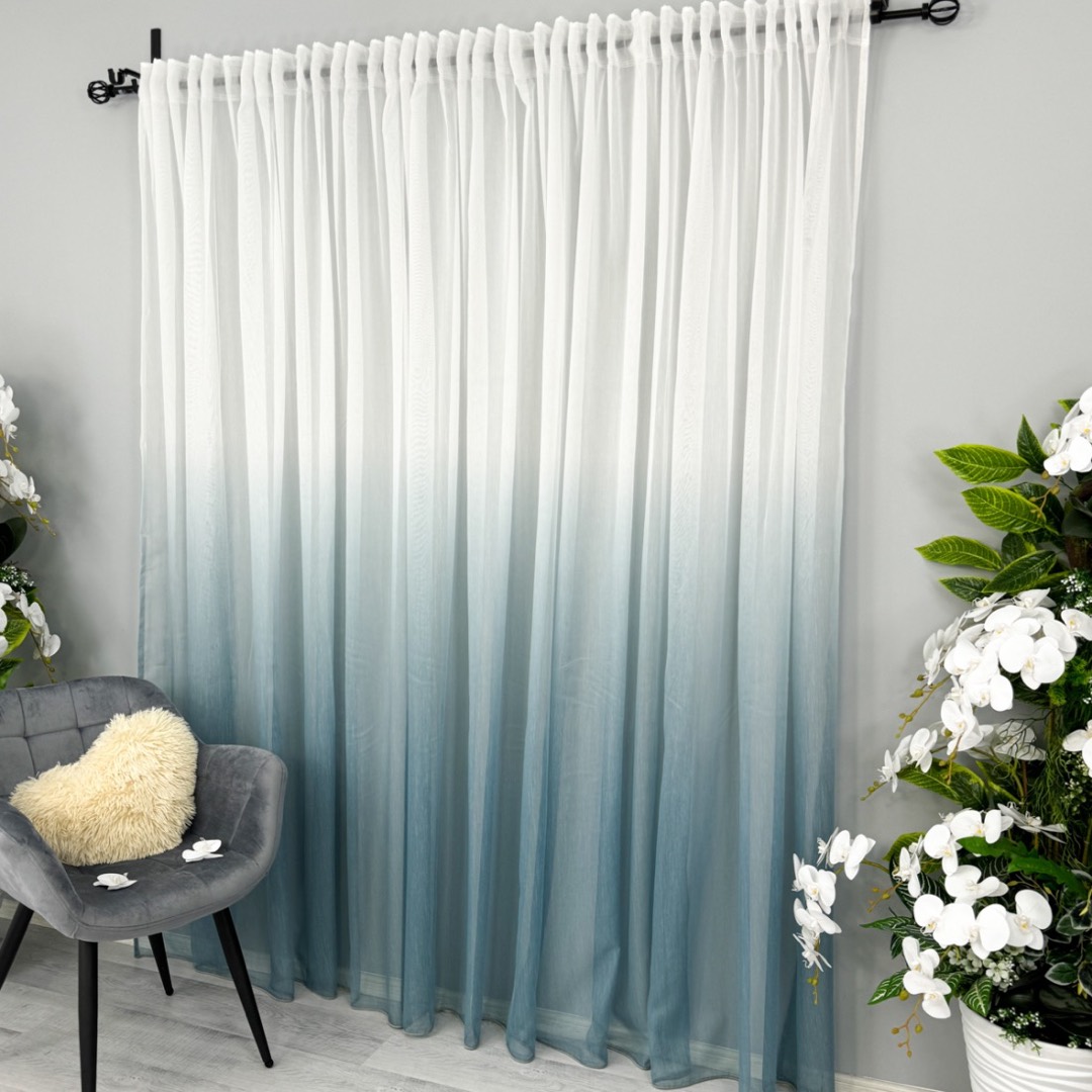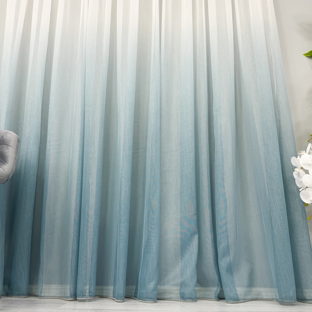 Perdea in Degrade din Fibra de Bambus, Alb cu Albastru, 140cm latime x 260cm inaltime, cu rejansa pt bara