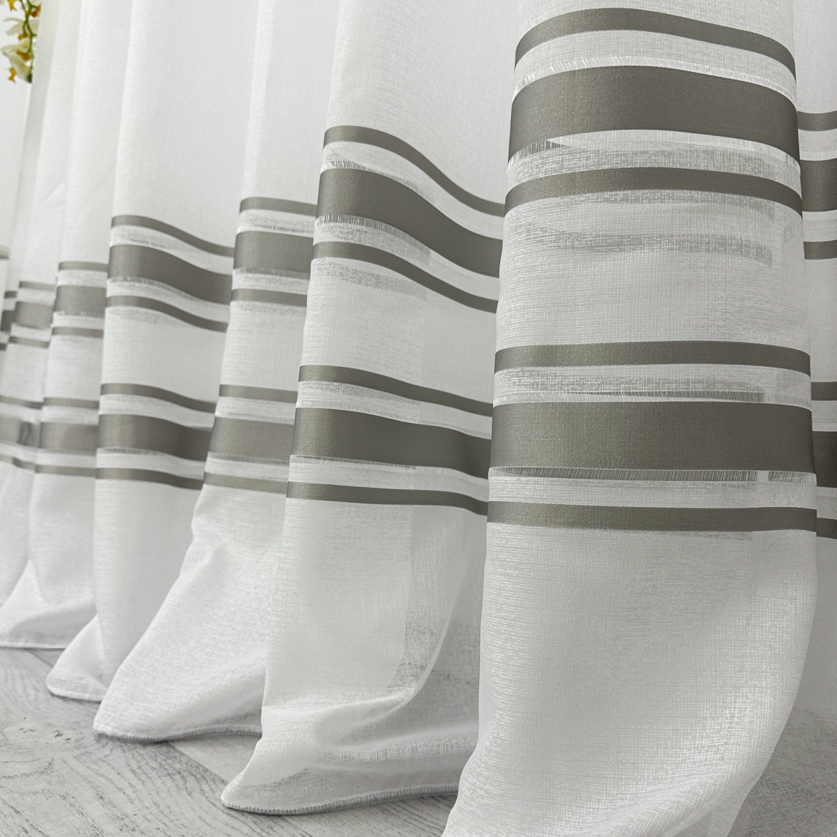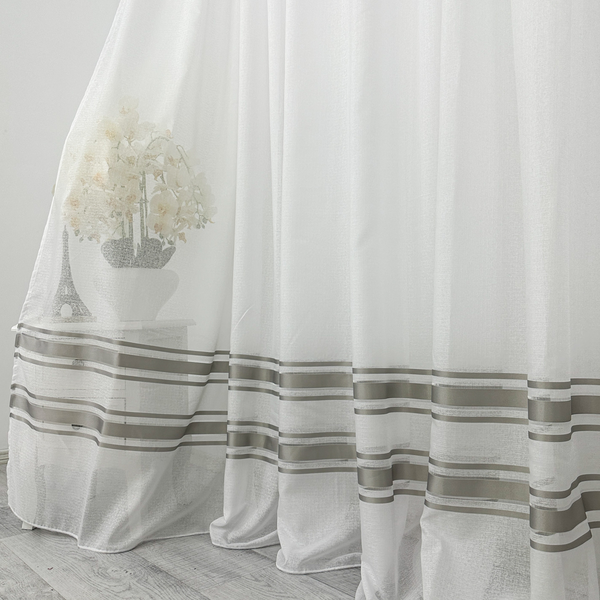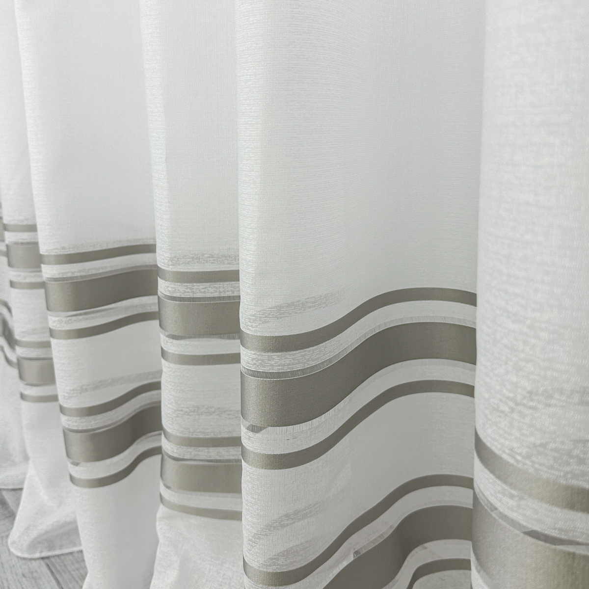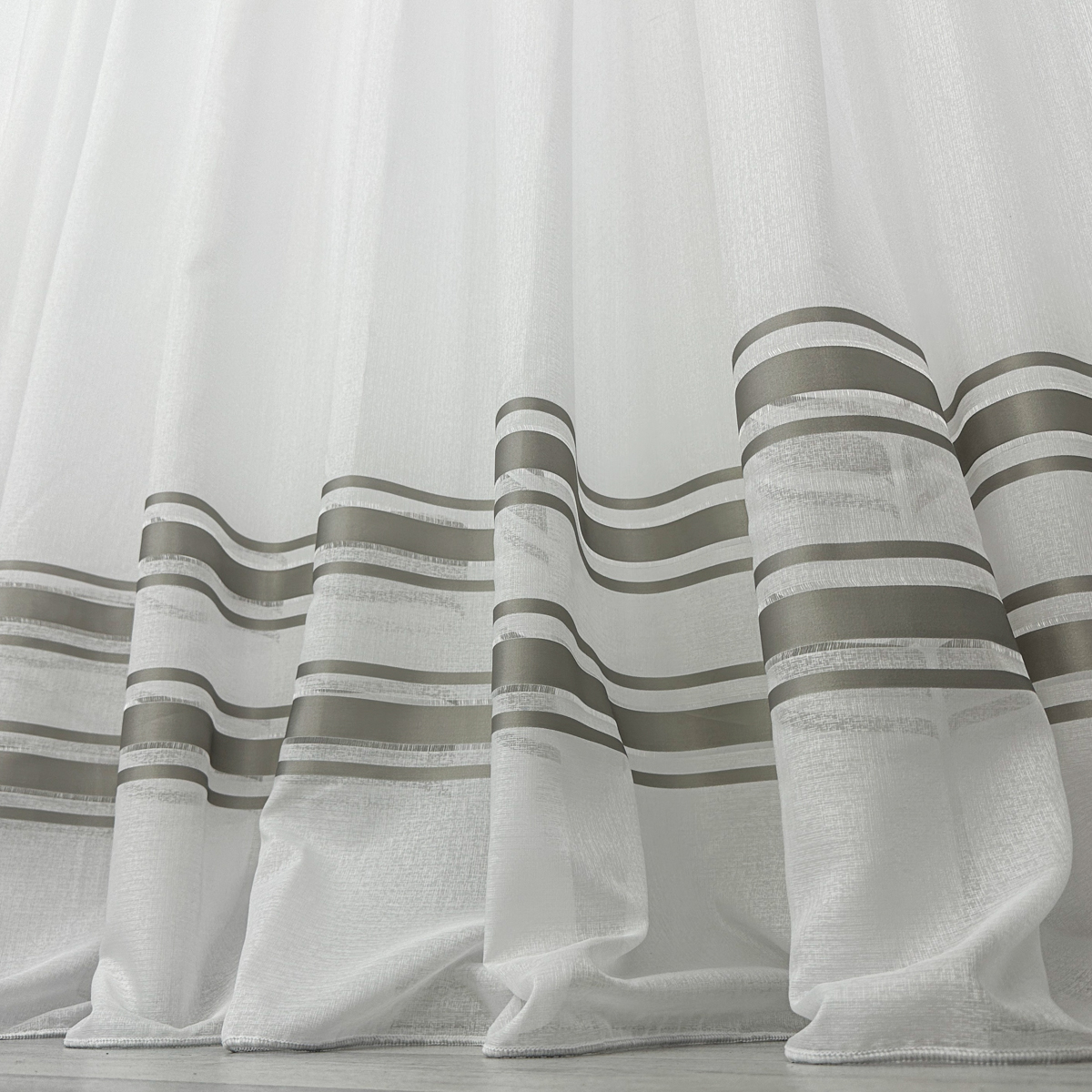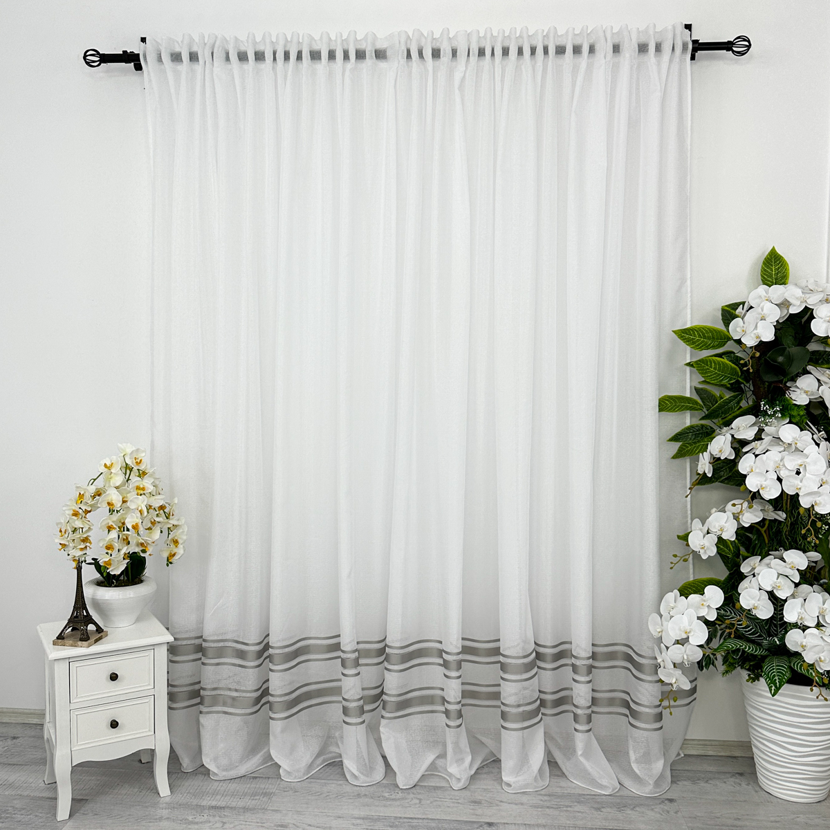 Perdea Lines tip IN plin, Alb - Gri, 140cm latime x 260cm inaltime, cu rejansa bara