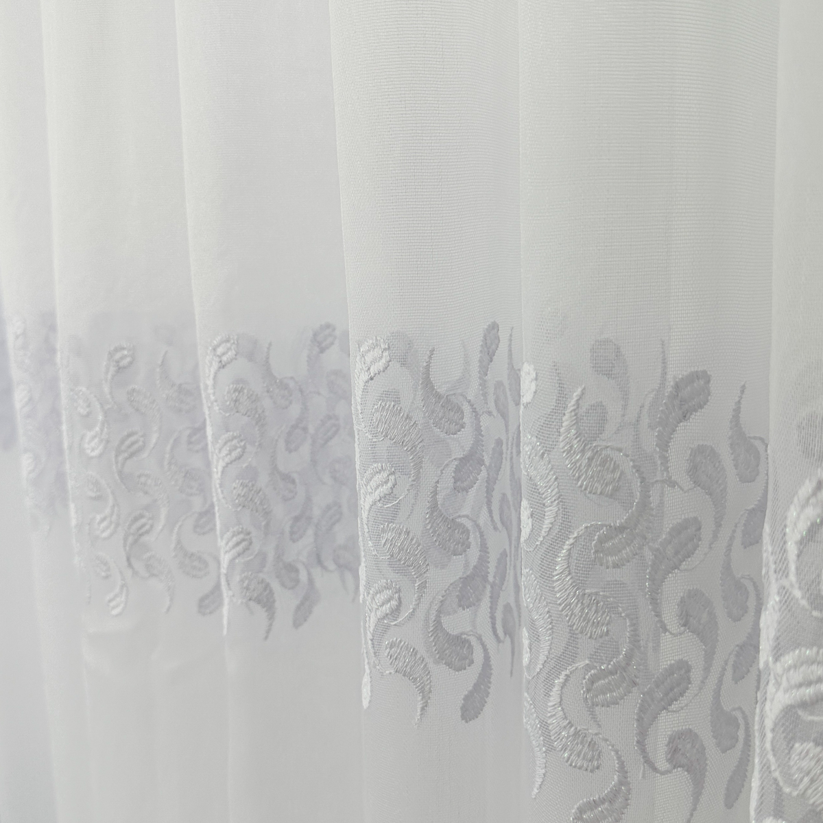 Perdea tip in brodat, dimensiune standard, cu rejansa pt bara. COMPOZITIA MATERIALULUI: 100% poliester CONTINUTUL PACHETULUI: perdea, pe dimensiune standard - 1 bucata 100x260cm.INTRETINEREA PRODUSULUI: Se spala la max. 30°C si se calca la temperatura normala, cu abur. Nu se recomanda spalarea cu inalbitori chimici si nici uscarea prin centrifugare. Inainte de prima utilizare, recomandam spalarea draperiilor, pentru a elimina eventualele impuritati si urme de praf. SISTEM DE PRINDERE: