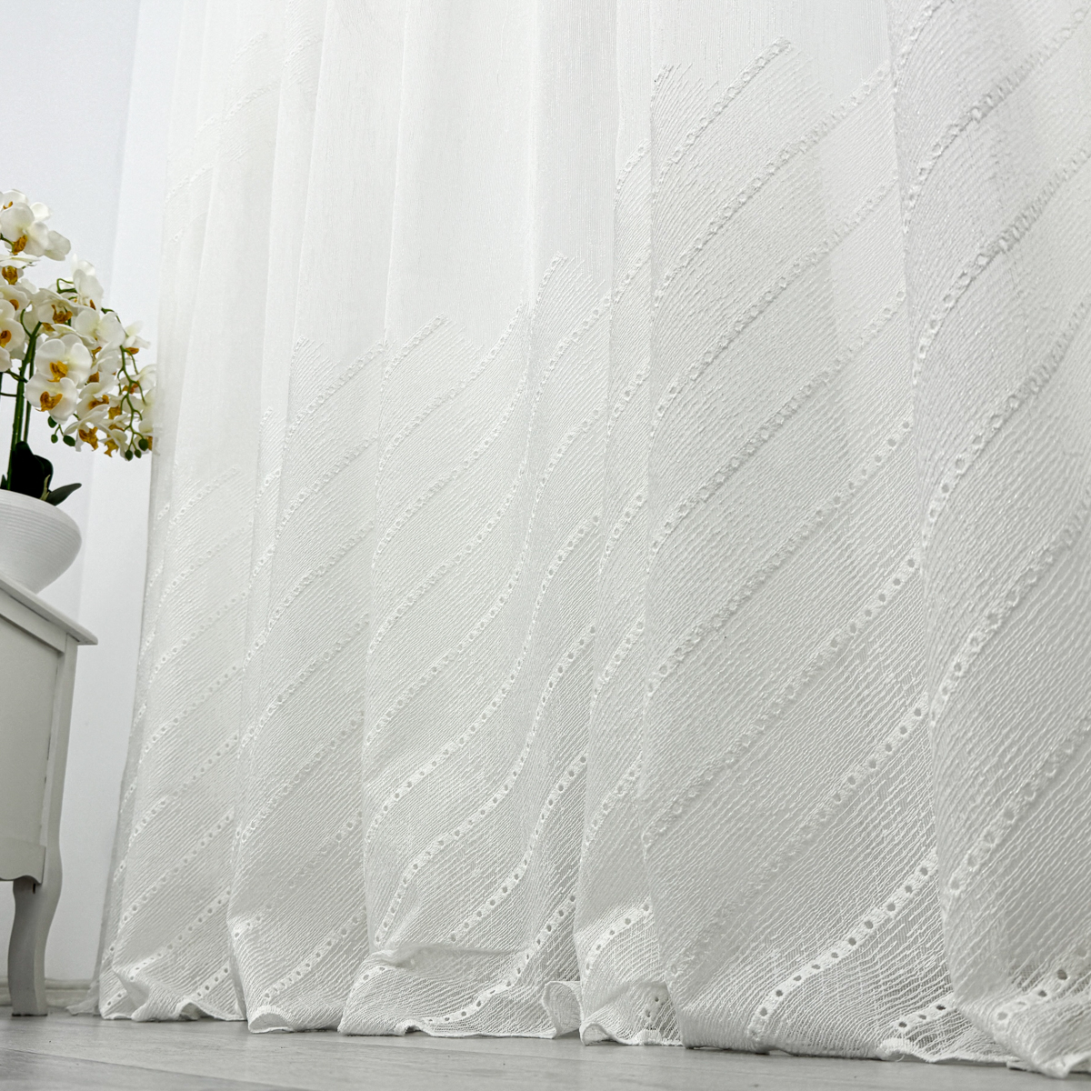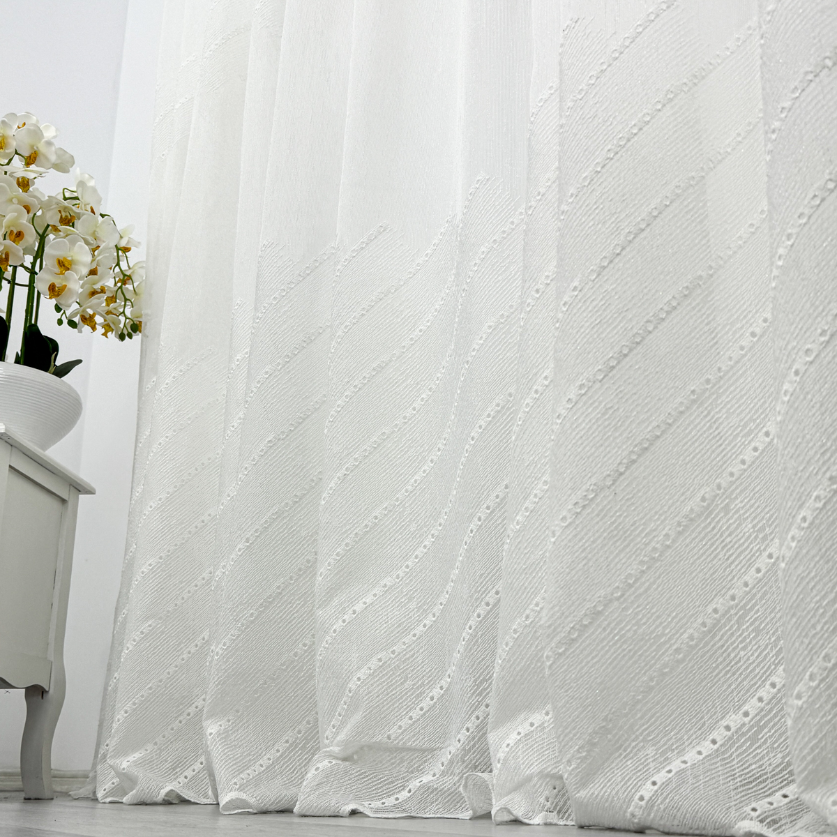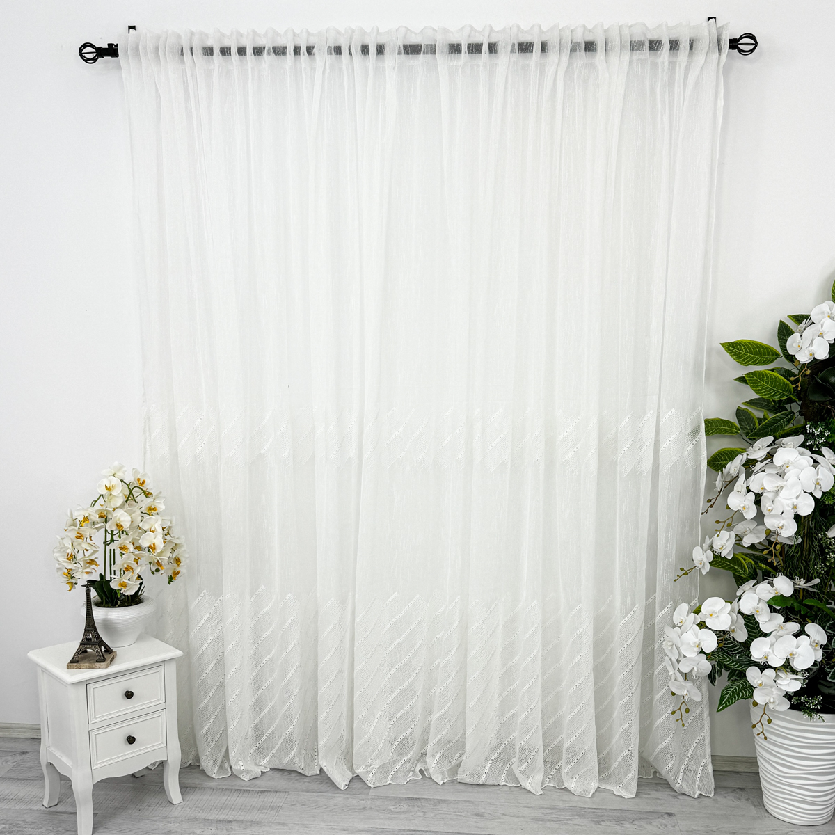 Perdea Mina tip IN Brodat, Ivoire, 140cm latime x 260cm inaltime, cu rejansa pt bara
