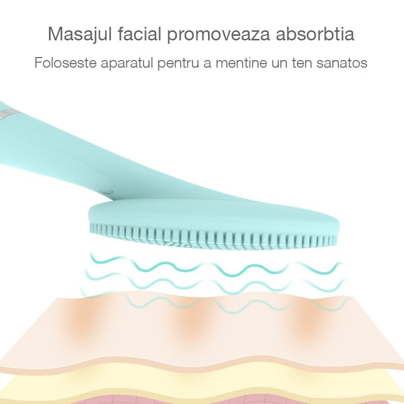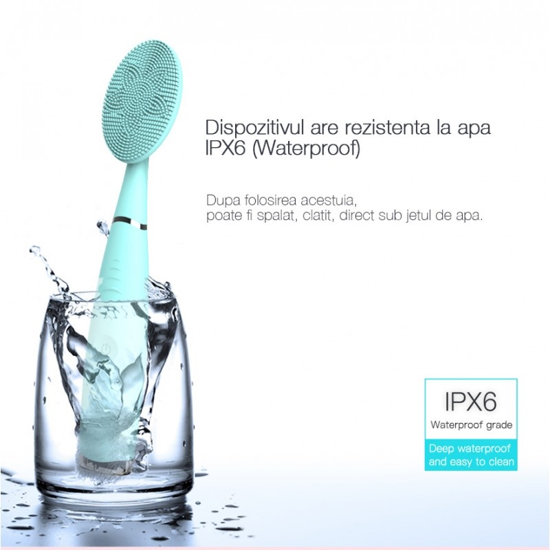 Instrumentul folosește tehnologia vibrațiilor FM , curăță stratul adanc de piele cu o frecvență de vibrație a undei sonore de 8000 de ori pe minut . Instrumentul freacă direct suprafața pielii cu contacte de silicon medical moale și blând, îndepărtează eficient murdăria facială și impuritățile decât peria obișnuită de nailon. Acest instrument functioneaza pe un principiu de vibrație de înaltă frecvență și nu are legătură cu undele ultrasonice. Cu ajutorul periei ai al motorului de inalta vibratiei, curata tenul si il maseaza in acelasi timp . Specificatii : Acumulator : 300 mah Rezistent la apa : IPX6 Voltaj : 3.7V Incarcare usb: 5V-1A Dimensiune : 188.5 x 36.5 x 22.3mm