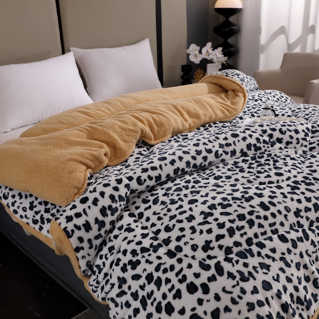 Pilota Cocolino cu Blanita Bej Ultra Pufoasa, Matlasata, 200x230 cm – Caldura Instanta si Confort de Lux pentru Nopti Reci, Alb, animal print