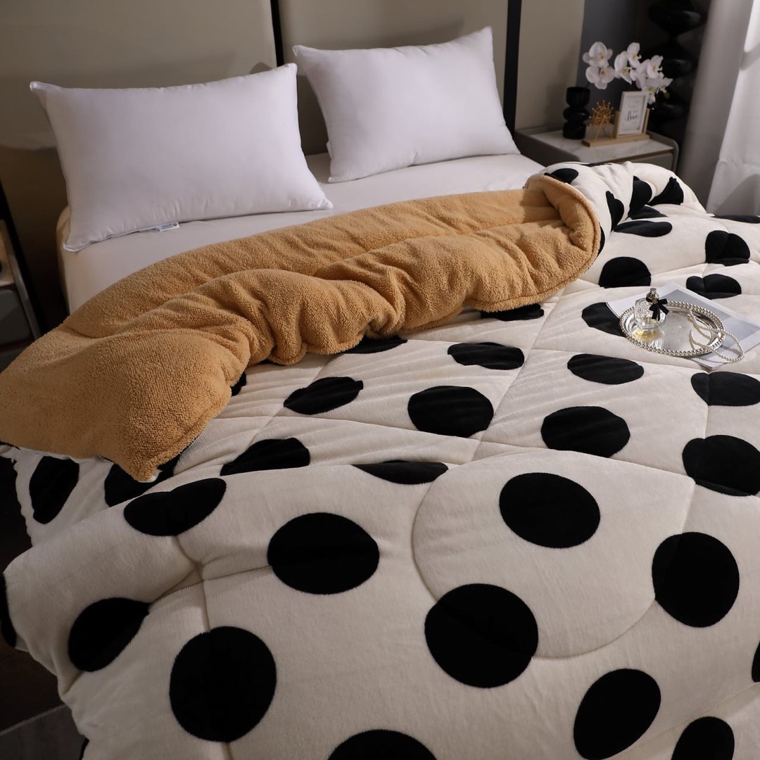Pilota Cocolino cu Blanita Bej Ultra Pufoasa, Matlasata, 200x230 cm – Caldura Instanta si Confort de Lux pentru Nopti Reci, Alb, buline