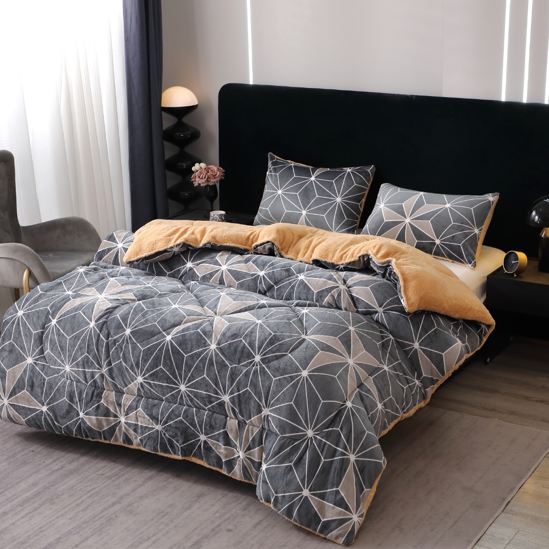 Pilota Cocolino cu Blanita Bej Ultra Pufoasa, Matlasata, 200x230cm + 2 fete de perna 50x70cm – Caldura Instanta si Confort de Lux pentru Nopti Reci, Gri, stele, forme geometrice