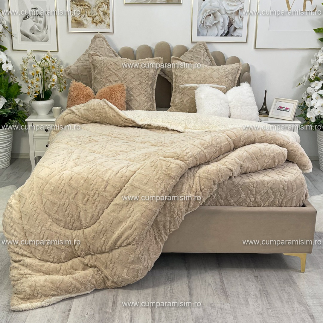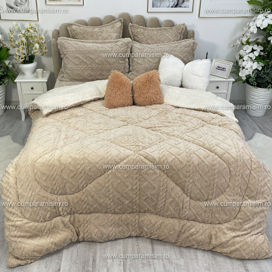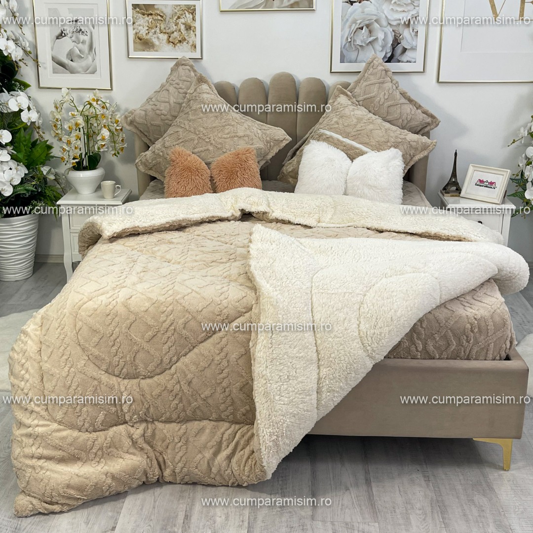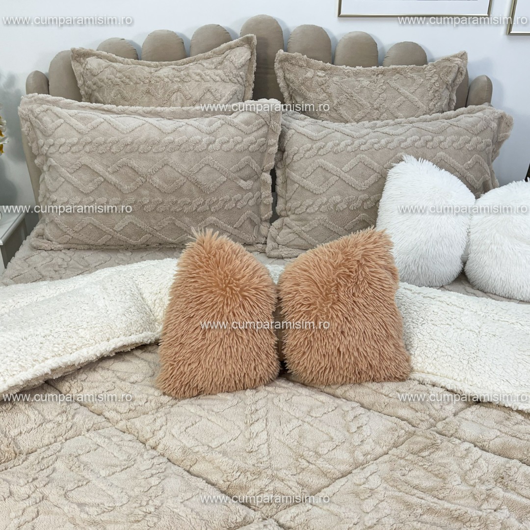 Pilota are 2 fete, este dubla. Pe prima fata este un imprimeu identic cu imaginea, iar pe cealalta parte are blanita crem , moale si placuta la atingere. Greutate: aproximativ 4 kg Material: microfibra plusata fina . Dimensiune pilota : 200x230 cm Dimensiune fete de perna (2bucati): 62 x 62cm Instructiuni de intretinere: - se spala automat sau manual la 40°C pentru rezistenta si intensitatea culorilor timp indelungat. - se recomanda a fi spalata inainte de prima utilizare pentru o igie