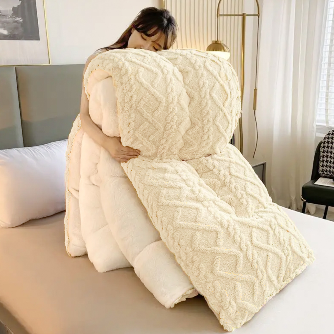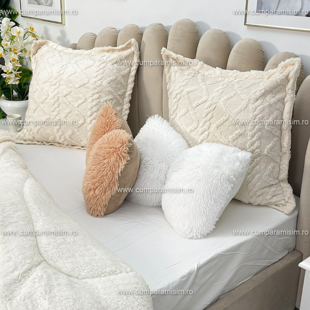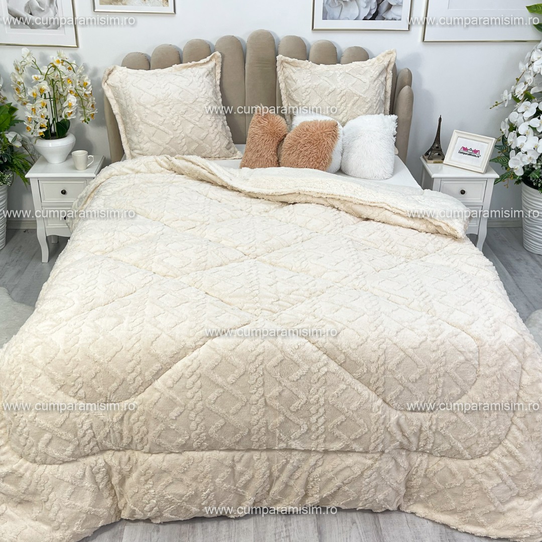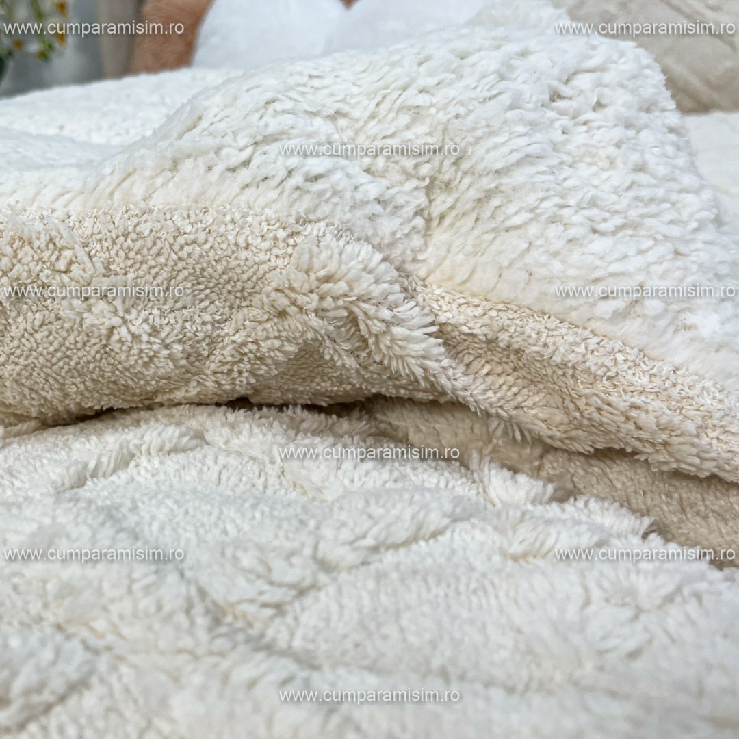 Pilota CoCoLiNo Sherpa tip Tricotaj cu blanita, matlasata, 200x230cm, crem