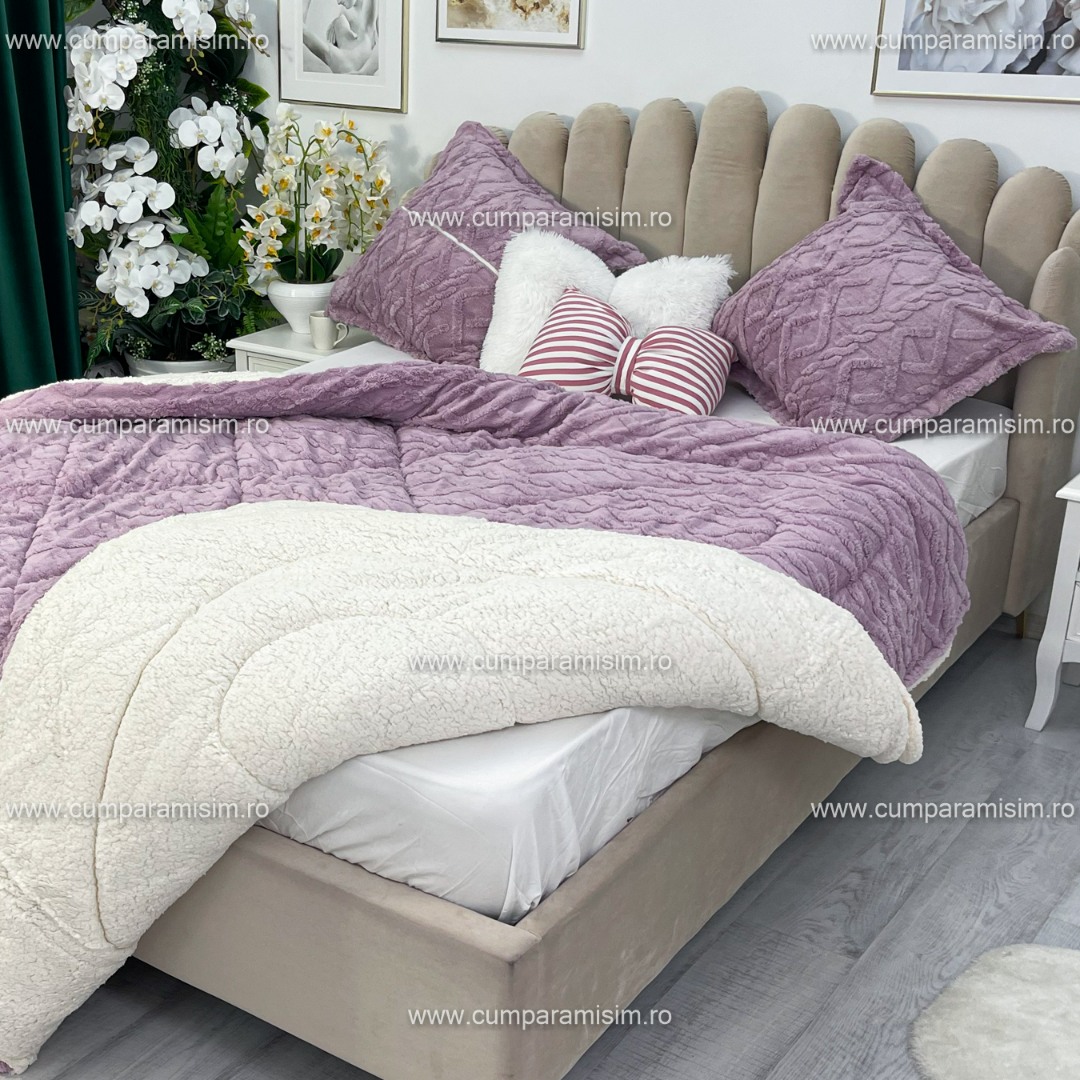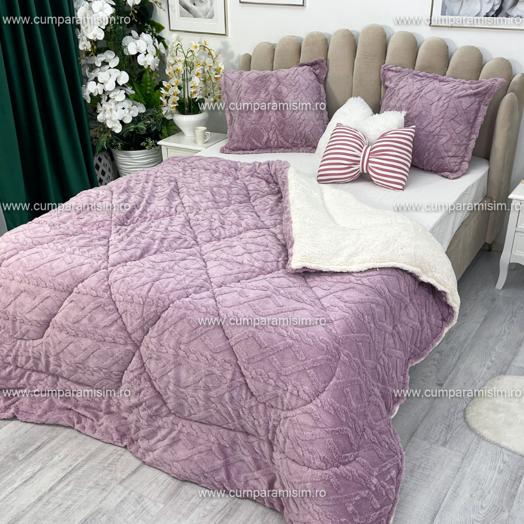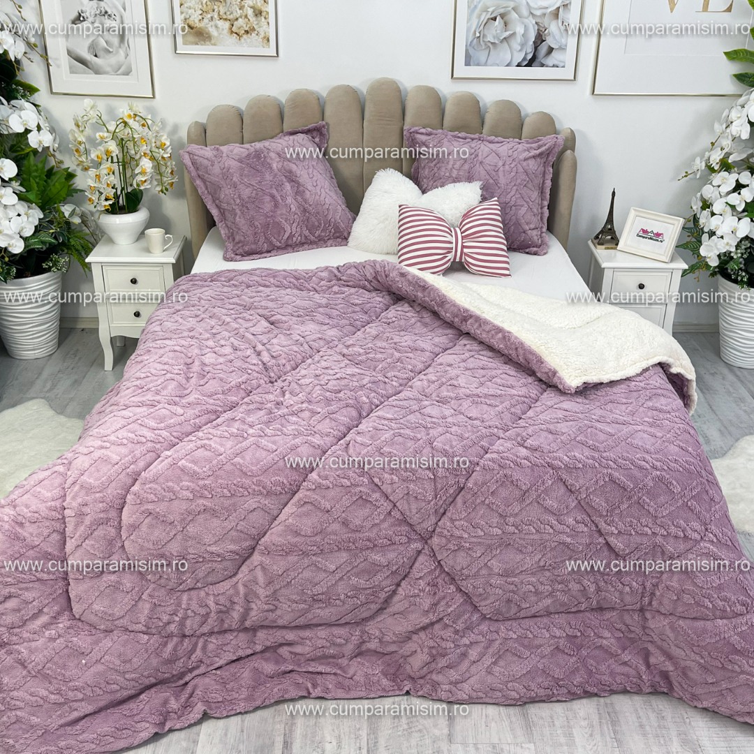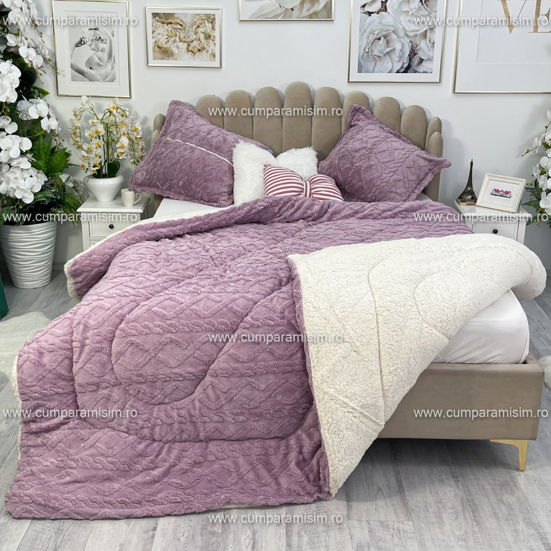 Pilota are 2 fete, este dubla. Pe prima fata este un imprimeu identic cu imaginea, iar pe cealalta parte are blanita crem , moale si placuta la atingere. Greutate: aproximativ 4 kg Material: microfibra plusata fina . Dimensiune pilota : 200x230 cm Dimensiune fete de perna (2bucati): 62 x 62cm Instructiuni de intretinere: - se spala automat sau manual la 40°C pentru rezistenta si intensitatea culorilor timp indelungat. - se recomanda a fi spalata inainte de prima utilizare pentru o igie