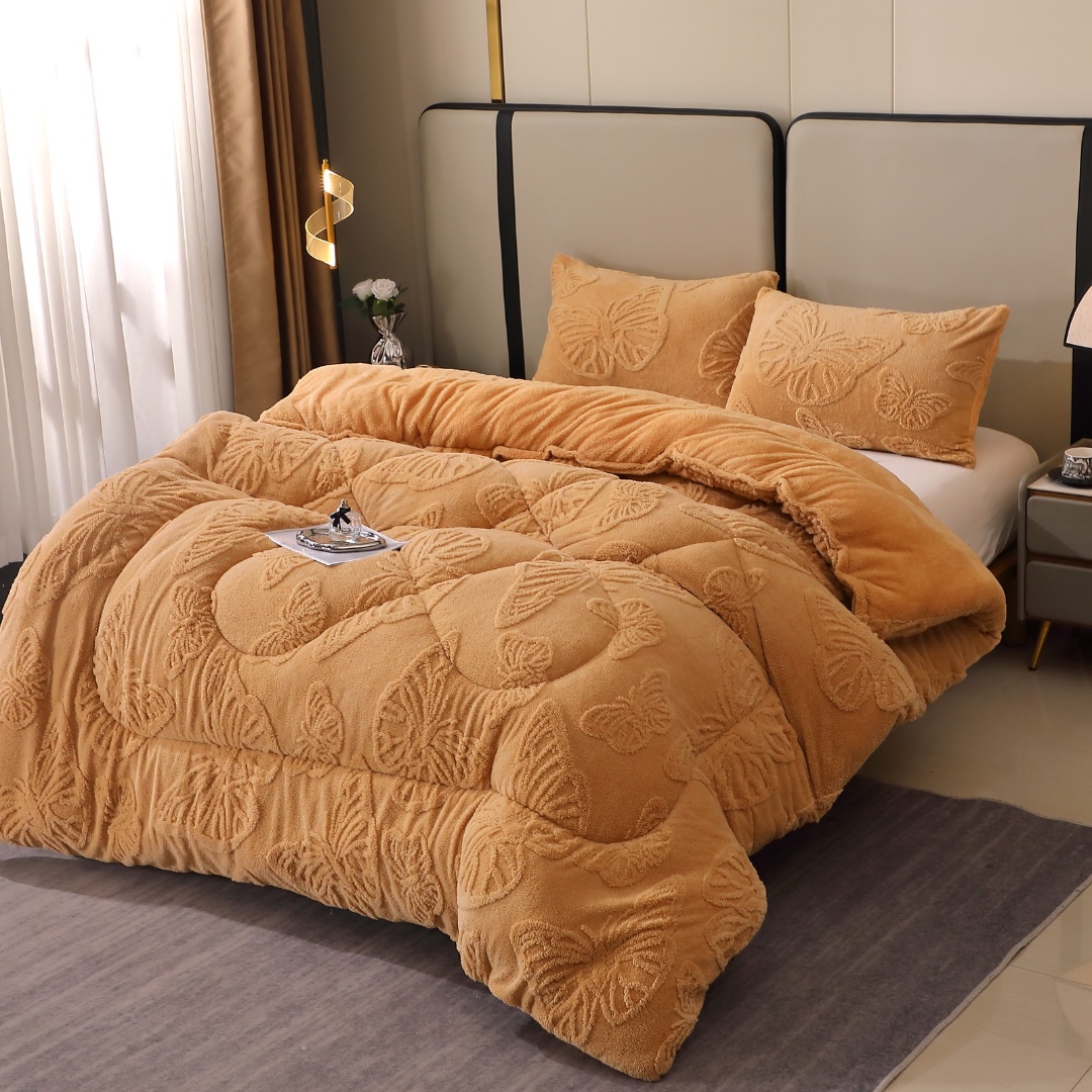Pilota Groasa Cocolino Gofrat 3D cu Fluturi in Relief cu Dos din Blanita Sherpa – Caldura, Eleganta si Confort Premium pentru Nopti de Vis Descopera o experienta de somn de lux cu pilota noastra groasa de dimensiuni 200x230 cm, realizata din microfibra plusata Cocolino cu model gofrat 3D si fluturi in relief. Fata din material Cocolino, delicata si moale, este completata de un dos din blanita Sherpa, oferindu-ti un strat suplimentar de caldura si confort. Cu o umplutura de vatelina sil