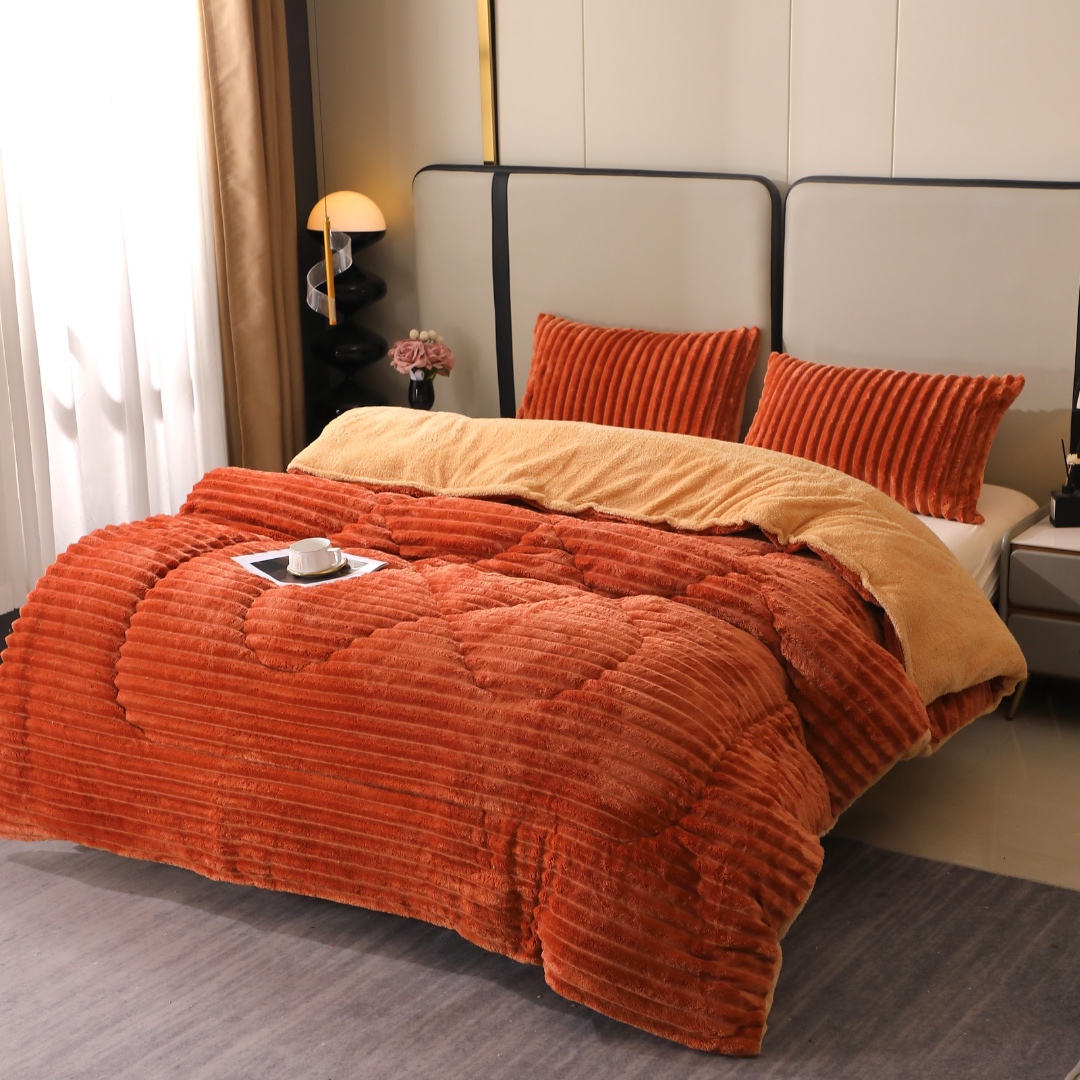 Pilota Premium din Blanita Artificiala de Iepure cu dosul din blanita tip Sherpa, Umpluta cu Vatelina Siliconica – Confort si Caldura de Neuitat Transforma noptile reci intr-o experienta de confort desavarsit cu pilota noastra dubla, creata pentru un somn de lux. Realizata cu fata din blanita artificiala de iepure extrem de fina si dosul din blanita Sherpa, aceasta pilota groasa si calduroasa iti ofera o imbratisare calduroasa in fiecare noapte. Avand o umplutura din vatelina siliconic