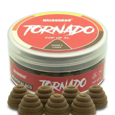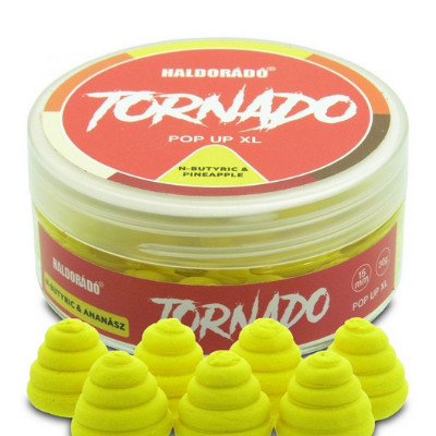 Seria de arome deosebit de atractive a gamei Tornado este acum disponibila ca P op-up XL , sub forma unica si speciala imprumutata de la wafterele cu acelasi nume dar cu 2 diferente notabile: marimea semnificativ mai mare si textura pop-up-ului - nu se inmoaie , nu devine gelatinos , isi pastreaza textura in apa, isi pastreaza flotabilitatea si emite constant aroma , timp indelungat. Este ideal pentru a echilibra alte momeli de carlig dar poate fi utilizat si singur, pentru o prezentare inaltata. Caracteristici: diametru: 15 mm; greutate neta: 30 g; arome: mango, usturoi/migdale, punch/menta, capsuna, cascaval Rokfort, n-butyric/ananas, turta dulce.