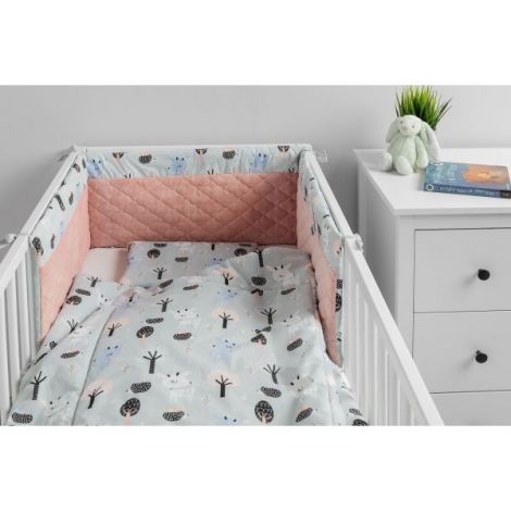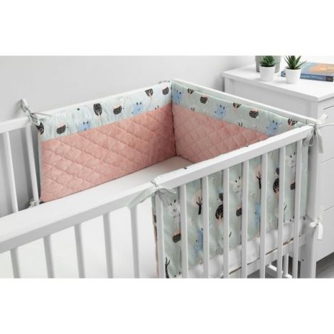 Protectie interioara de plus patut Sensillo KARO 180x30 cm CaprioareProtectia pentru patut de plus Sensillo KARO este un accesoriu perfect pentru trusoul bebelusului. Umplutura de bumbac protejeaza copilul de loviturile provocate de miscarile in patut si de peretii reci. O parte este realizata din bumbac moale imprimat, iar partea cealalta este realizata din plus delicat. Numeroase funde fixeaza protectia in pozitia corecta. Este proiectata pentru patuturi cu dimensiunea de 120x60 cm.rProdus realizat in PoloniarDATE TEHNICE:rVarsta: 0+ luniDimensiuni: 180x30 cm (+/- 2 cm)Materiale: Fata interioara: 100% bumbac; Fata exterioara: 100% poliester; Umplutura: 100% poliesterIntretinere: Spalare manuala la maximum 30°C; Nu se albeste; Nu se curata chimic; Se calca la 110°CContraindicat copiilor mai mici de 3 ani. Jucaria/produsul poate contine piese mici care se pot inghiti sau inhala existand pericolul de sufocare sau nu este potrivita copiilor mai mici de 3 ani. Nu lasati ambalajele jucariilor/produselor la indemana copiilor. Indepartati orice ambalaj al jucariei/produsului inainte de a da jucaria/produsul copilului. Va rugam sa supravegheati copilul in timp ce se joaca/foloseste acest produs. Pastrati instructiunile si etichetele pentru referinte viitoare. Pastrati jucaria/produsul departe de foc; feriti jucaria/produsul de temperaturi ridicate si umiditate.