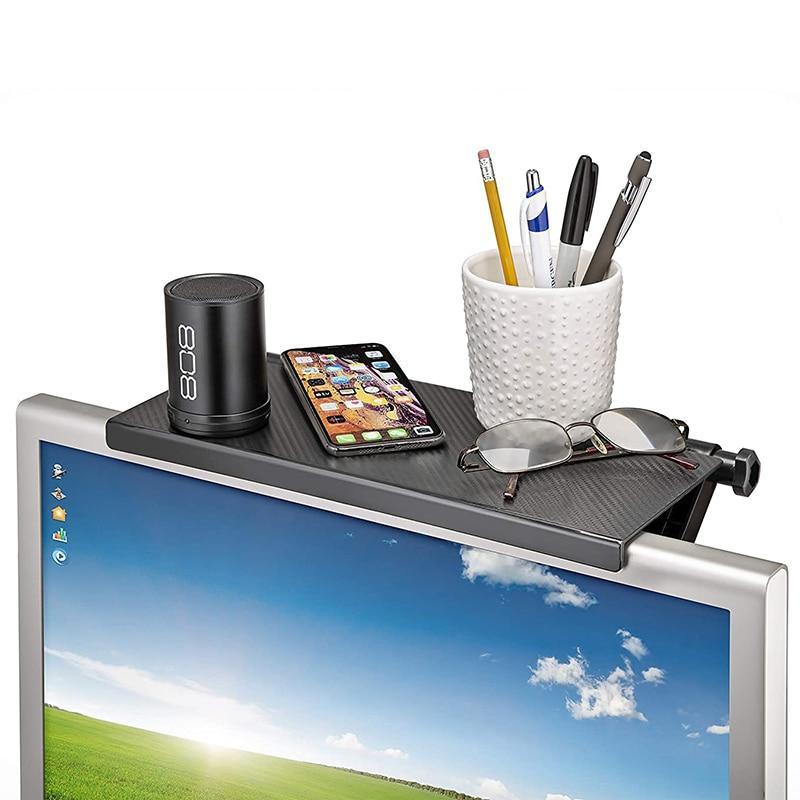 Raft reglabil pentru monitor sau televizor - Screen Top Shelf Material ecologic ABS, robust si durabil Design creativ pentru a maximiza utilizarea spatiului Doua brate mobile - pot fi utilizate pentru o varietate de ecrane Suprafata aderenta - previne alunecarea articolelor. Material: ABS, culoarea neagra dimensiune: 33 x 16 x 2.5 cm