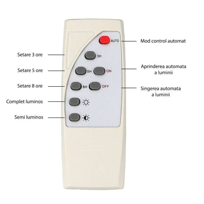 Proiectoarele LED cu panou solar sunt adesea folosite pentru iluminarea terenurilor de joaca in aer liber, gradini si intrarilor in garajuri. Ele pot fi montate pe perete, stalp sau alte constructii si vor asigura iluminarea pe timp de noapte sau pot fi programate pentru 3,5,8 ore de iluminare continua. Fasciculul alb de lumina produs de aceste proiectoare este foarte asemanator cu lumina zilei, asigurand un confort vizual pe timp de noapte. Proiectoarele led cu panou solar pot functiona in orice anotimp, insa trebuie sa luati in considerare ca, randamentul acestora este afectat de starea vremii. Daca afara este inorat pe toata perioada zilei, panoul se va incarca la eficienta foarte mica, astfel noaptea va sta aprins putin, timp de cateva ore. Insa, daca afara este soare si panoul va fi expus direct la lumina soarelui, sansele sunt ca lampa sa functioneze toata noaptea. Avantajele proiectoarelor LED cu panou solar: Grad de protectie IP67; 0 costuri pentru energia electrica; Costuri reduse de intretinere datorita unei durate de viata lungi; Setare si control de la telecomanda; Ajustarea fluxului luminos in dependeta de cerintele utilizatorului; Specificatii: Culoare carcasa: Negru; Culoare lumina: Alba rece; Putere: 10W; Numar LED-uri: 30; Alimentare: Energie solara; Autonomie: 10h; Temperatura Culoare: 6500K; Durata Functionare: >30.000h; Unghi Lumina: 120°; Putere panou solar: 12W Dimensiuni Proiector / Panou Solar: 115 x 143 x 70 mm / 120 x 210 mm; Lungime cablu: 430cm Capacitatea acumulatorului: 900 mA; Protectie la Umiditate: IP67; Material: Aluminiu; Set complet pentru montare. Notă: Panoul solar trebuie amplasat acolo unde poate primi direct lumina maxima a soarelui. Timpul de iluminare depinde de vreme, anotimpuri, locuri, etc. Pachetul include: Proiector solar Panou solar Telecomandă Accesorii de asamblare Manual de utilizare.
